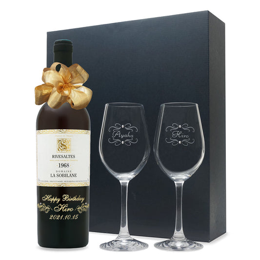 1968年 生まれ年ワイン ペアグラスのセット 名前入り彫刻のお酒 昭和43年 甘口