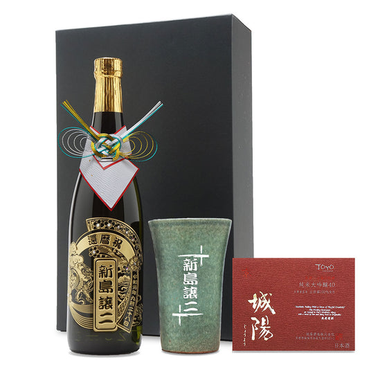 城陽 720ml 名入れ彫刻 京都の地酒/日本酒 信楽焼き陶器カップセット