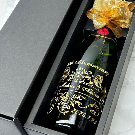 名前入り彫刻 スパークリングワイン 750ml バタフライ ラインストーンデコ 誕生日/結婚祝い