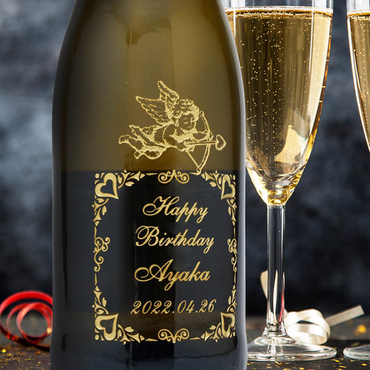 名前入り彫刻 スパークリングワイン 750ml ハート/エンジェル ラインストーンデコ