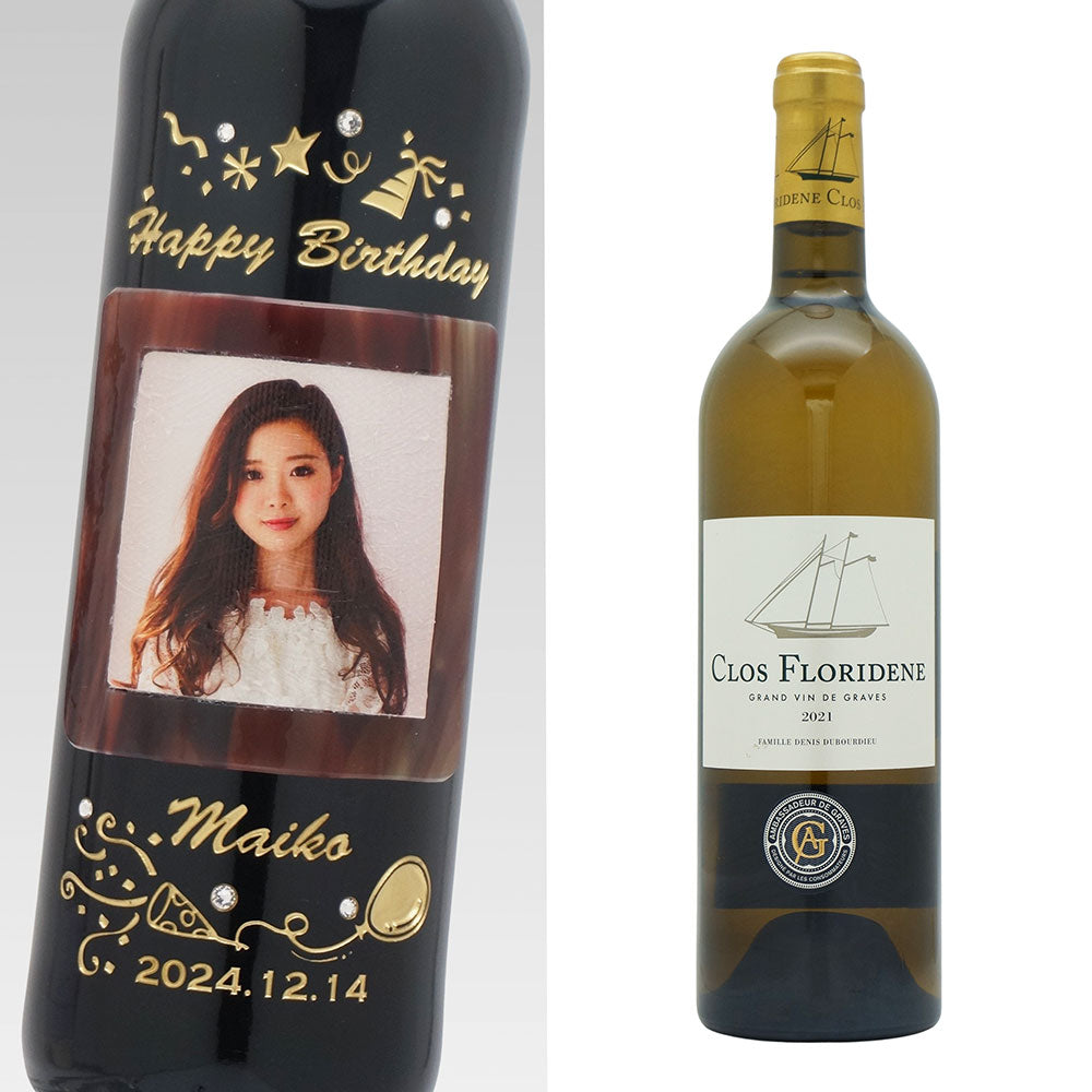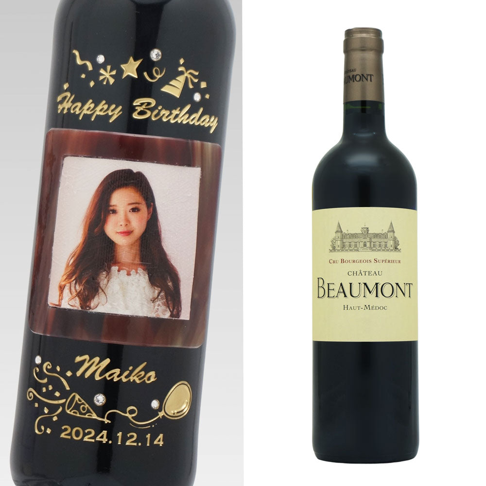 写真 名前入り彫刻ワイン ラインストーンデコ 誕生日 結婚祝 メモリアル