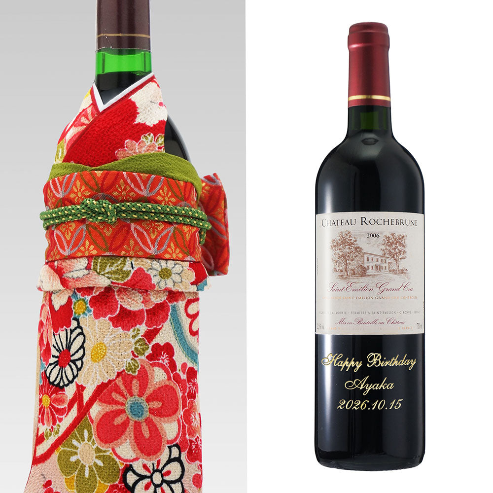 2006年に収穫されたブドウで醸造・熟成された生まれ年ワインに着物をかぶせた「世界に1つ」の贈り物です。