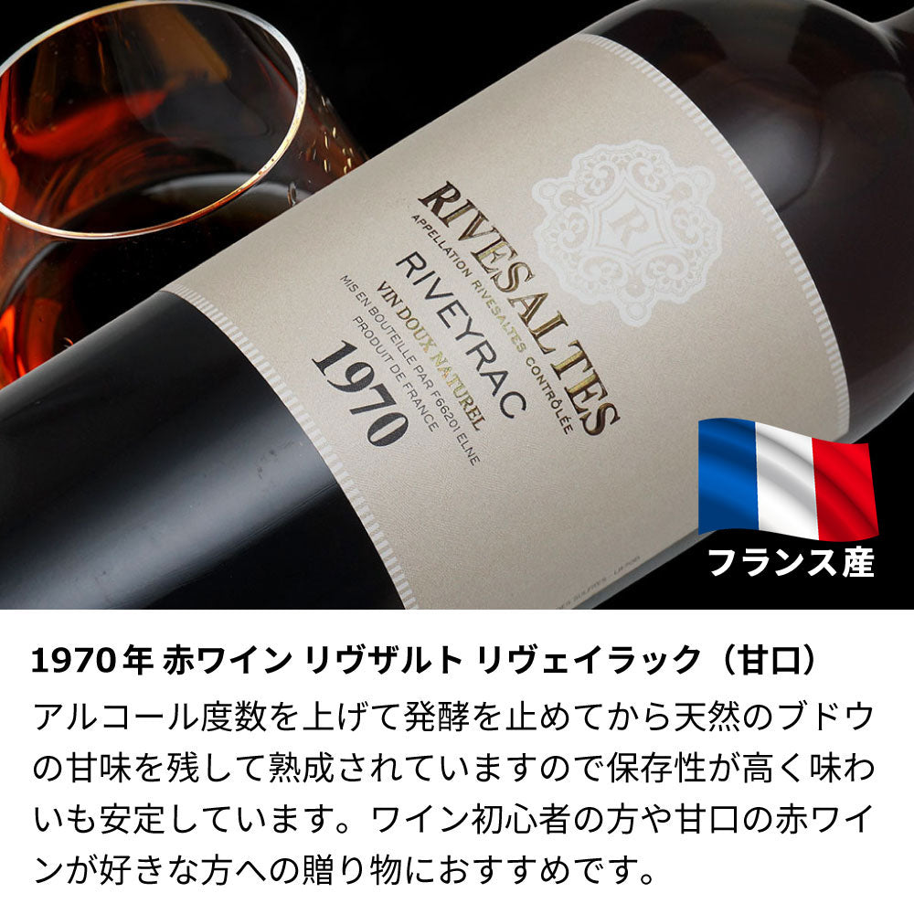 1970年に収穫されたブドウで作られた生まれ年ワインの贈り物。