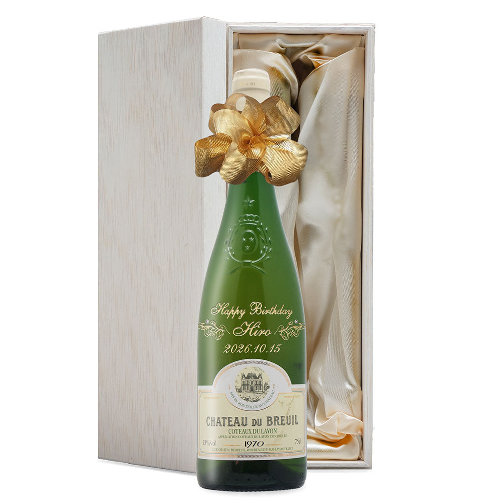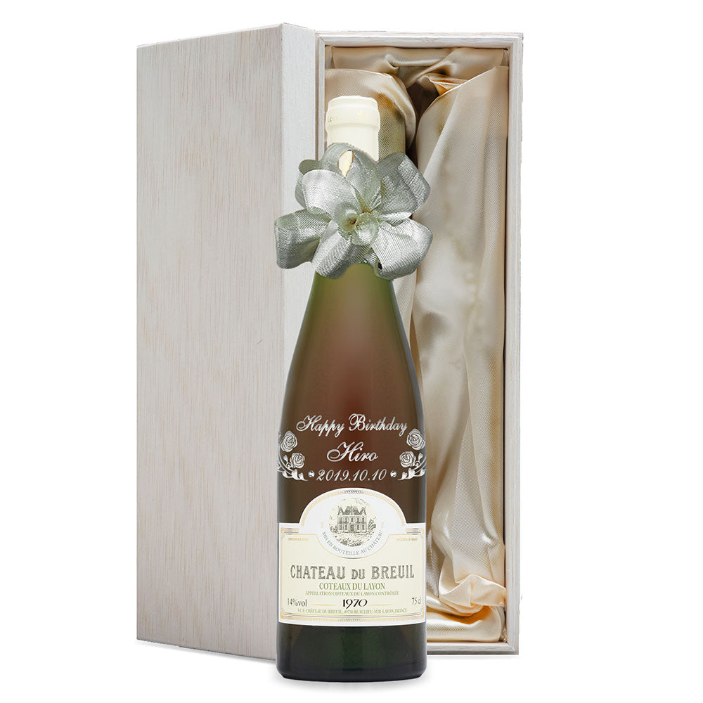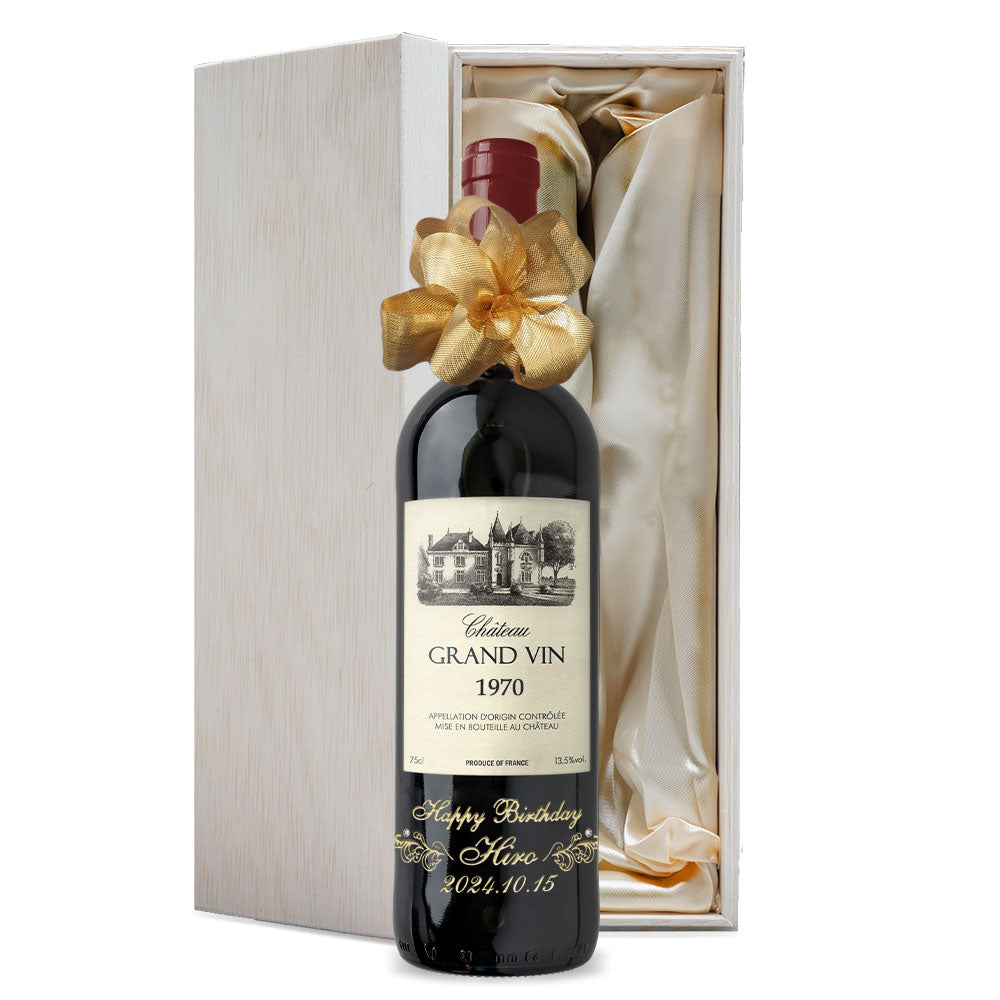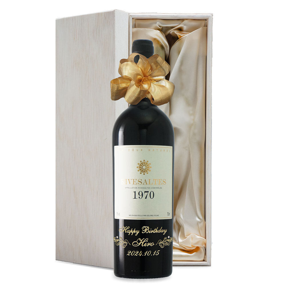 1970年に収穫されたブドウで作られた生まれ年ワインに、名前やメッセージを彫刻して贈る、特別なオーダーメイドギフト。誕生日や記念日に、世界でひとつだけの感動をお届けします。