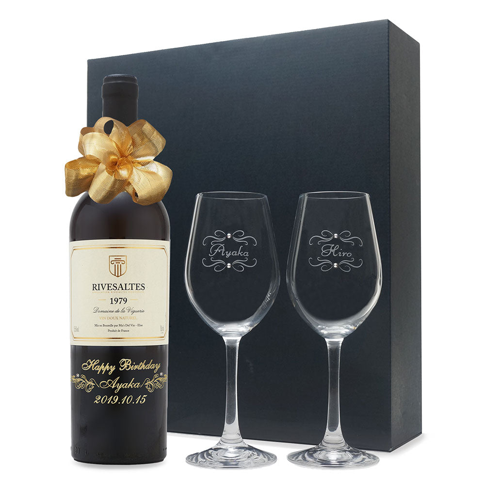 1979年 生まれ年ワイン ペアグラスのセット 名前入り彫刻のお酒 昭和54年
