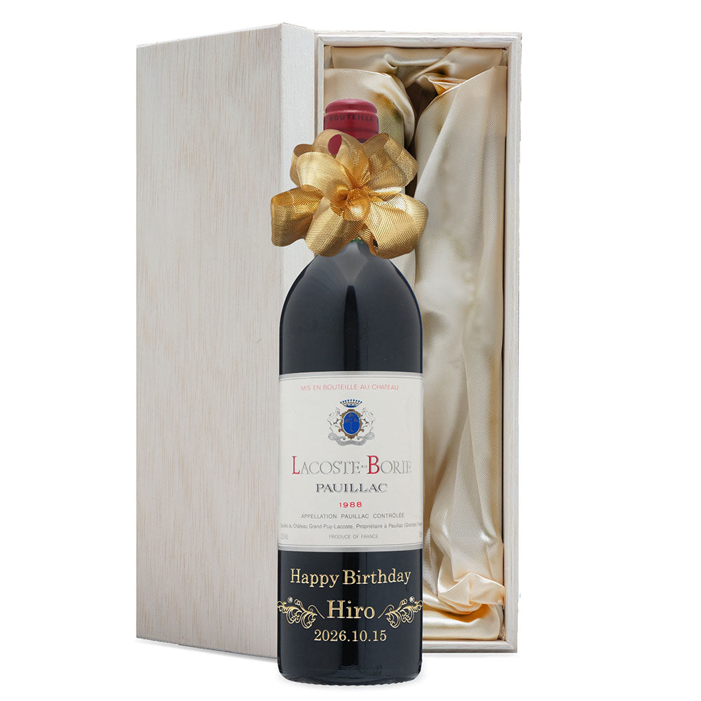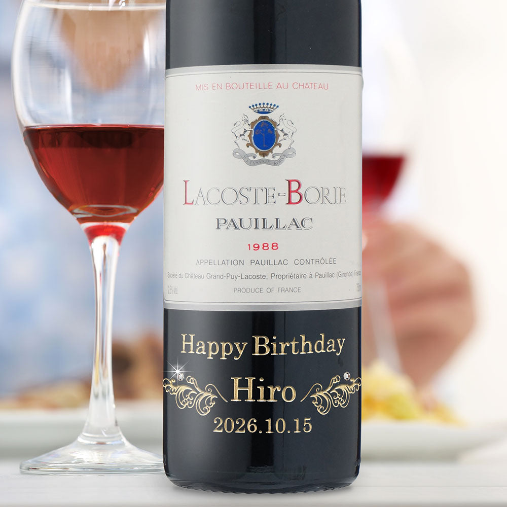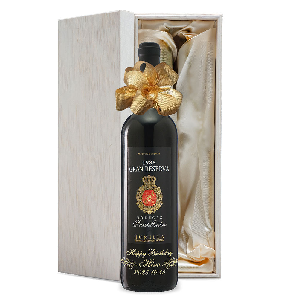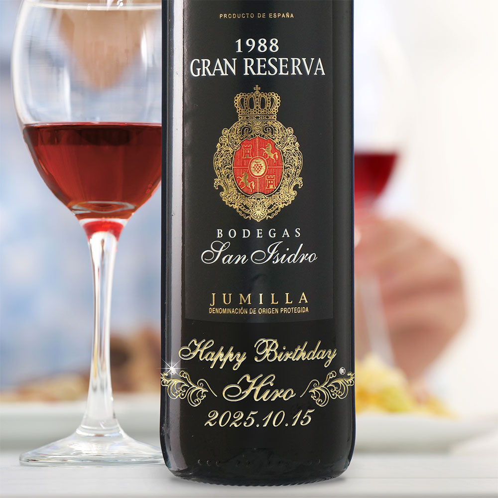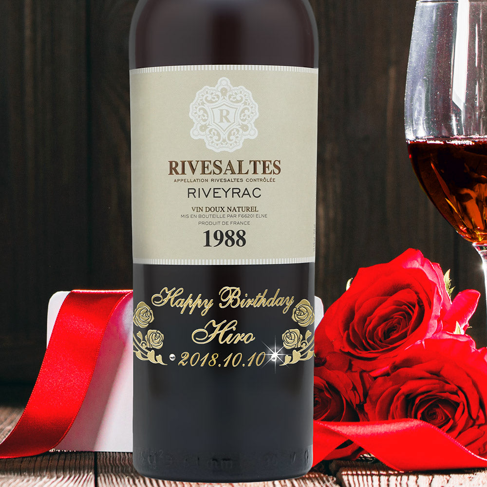 1988年に収穫されたブドウで作られた生まれ年ワインに、名前やメッセージを彫刻して贈る、特別なオーダーメイドギフト。誕生日や記念日に、世界でひとつだけの感動をお届けします。