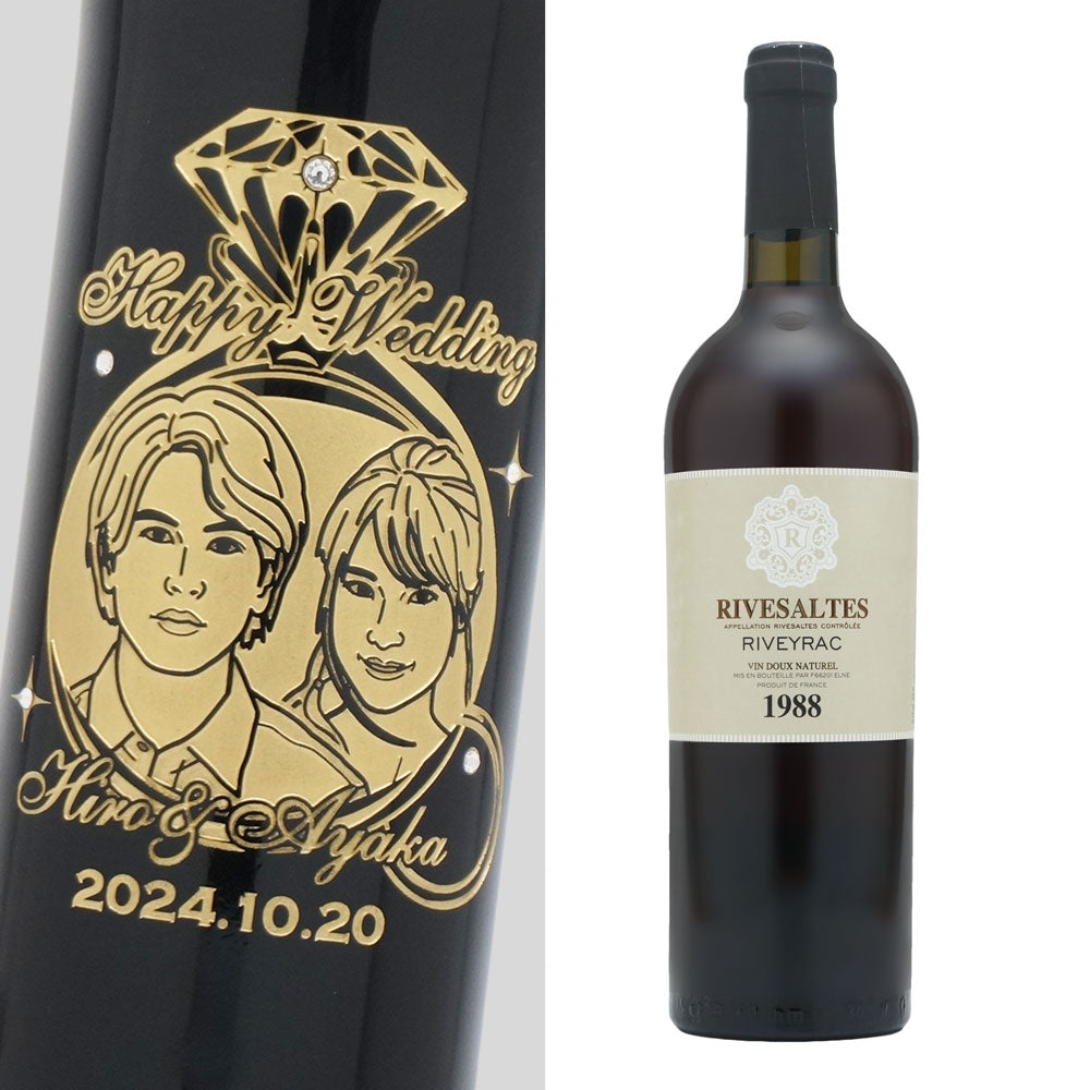1988年 結婚記念年 / 誕生日 生まれ年ワイン 名前 似顔絵の彫刻 木箱入 昭和63年