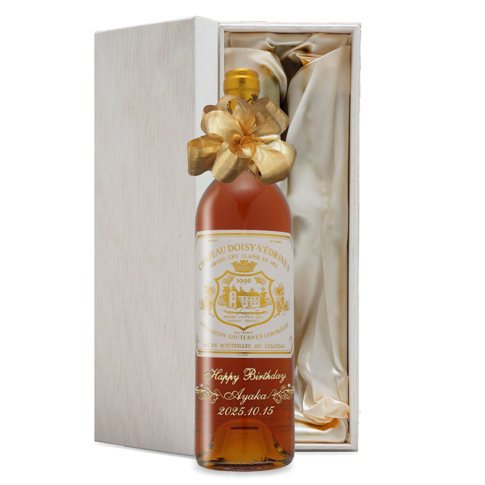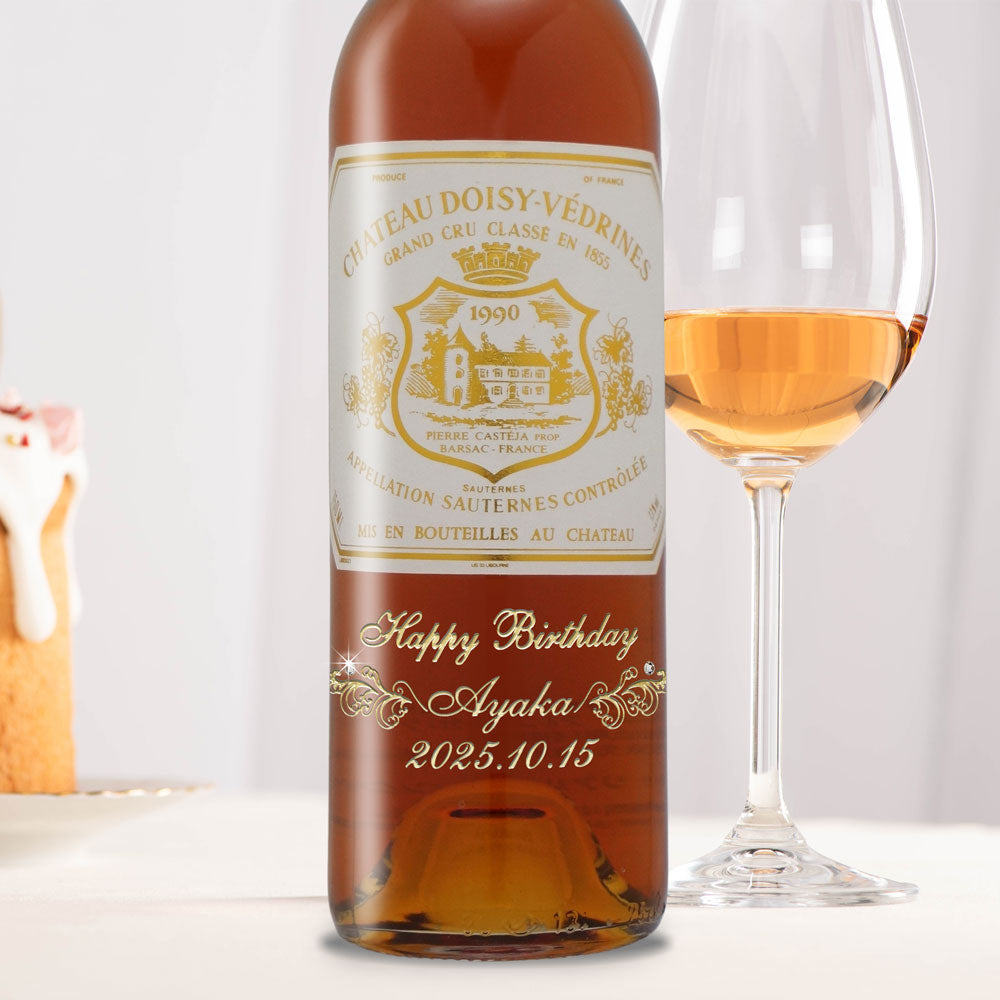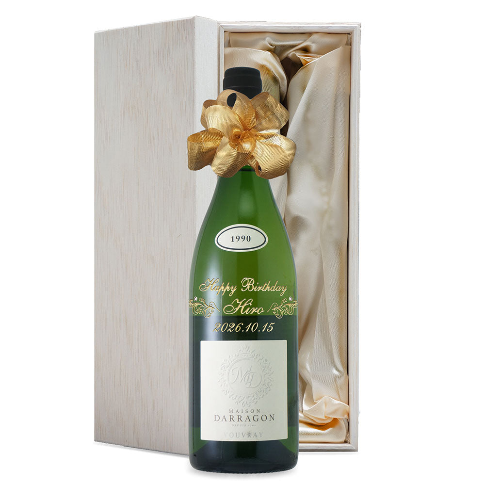 1990年に収穫されたブドウで作られた生まれ年ワインに、名前やメッセージを彫刻して贈る、特別なオーダーメイドギフト。誕生日や記念日に、世界でひとつだけの感動をお届けします。