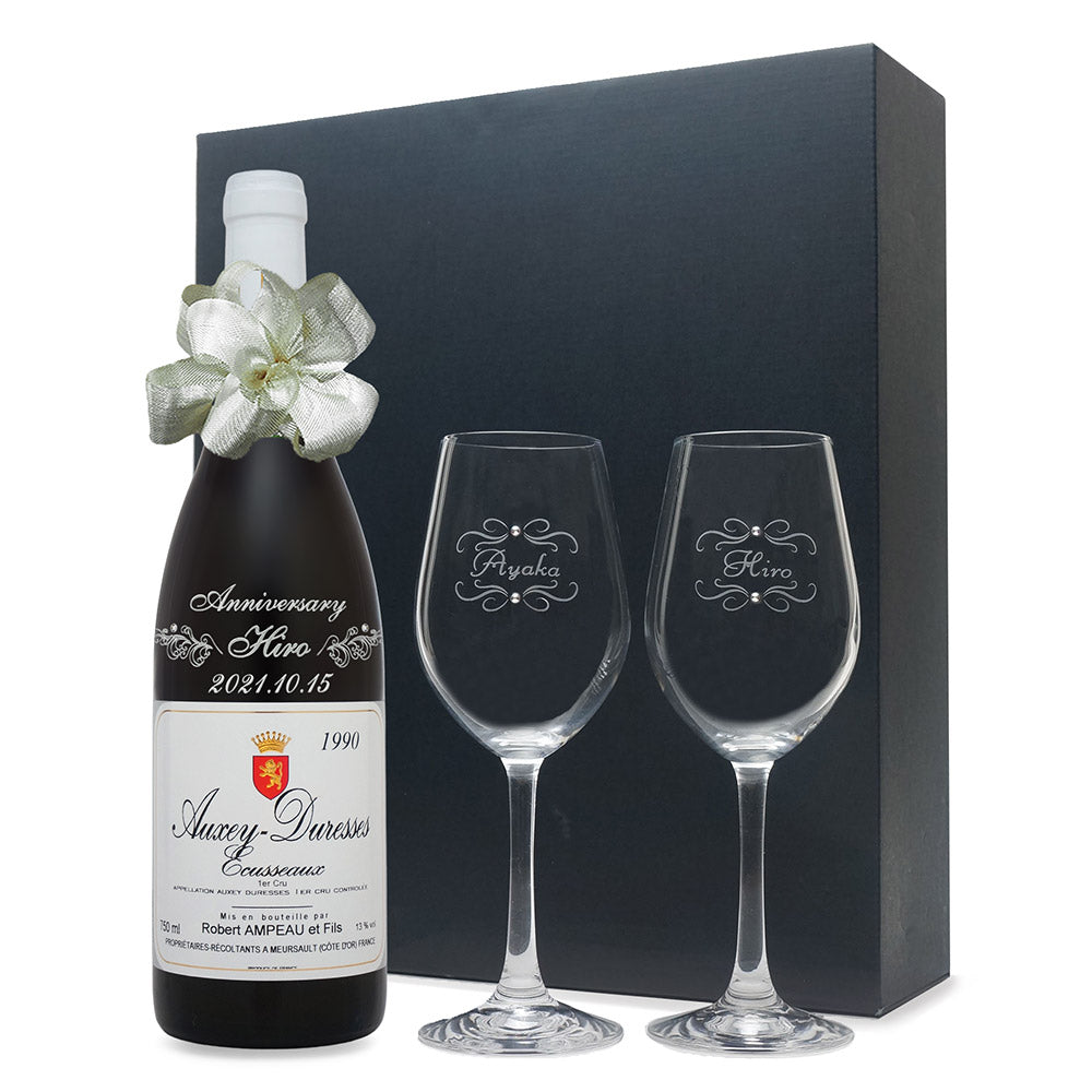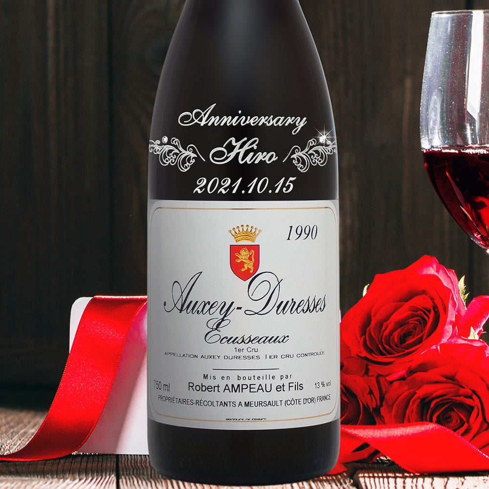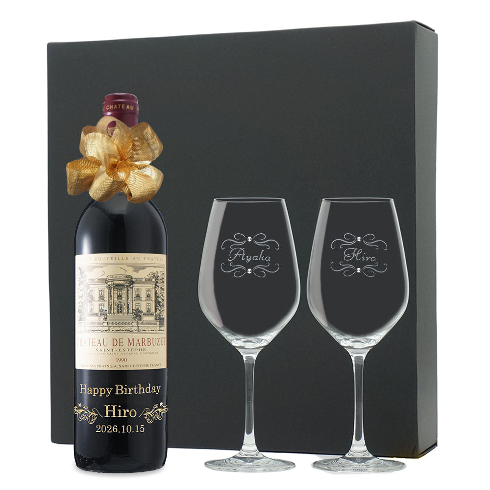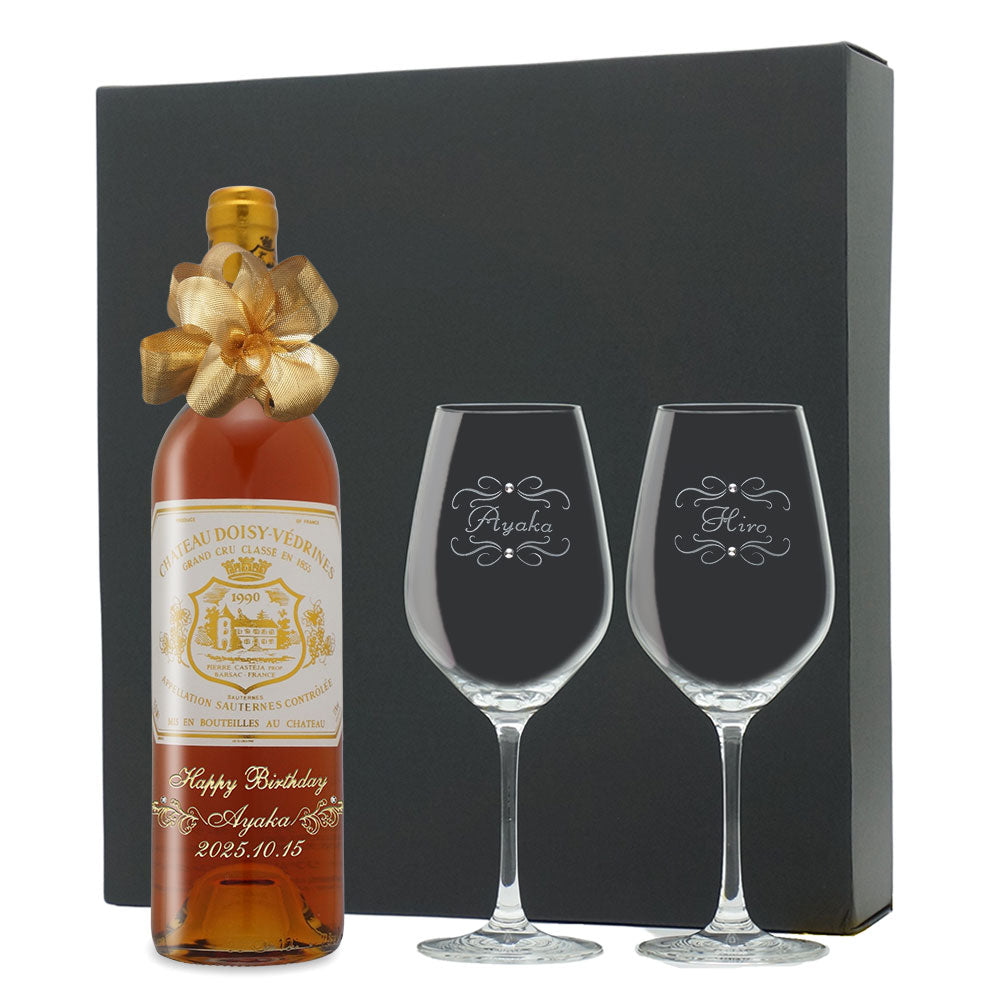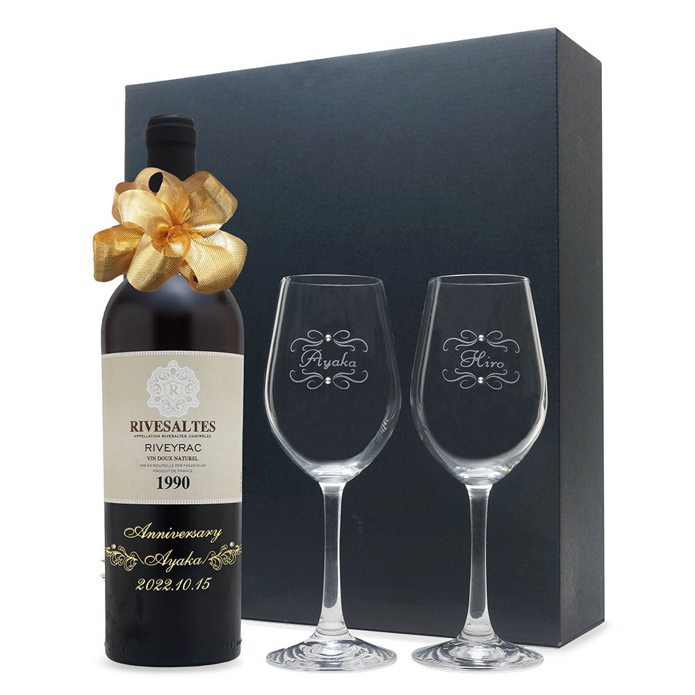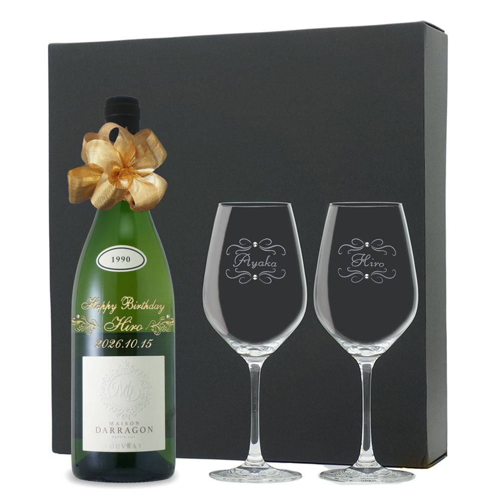1990年に収穫されたブドウで作られた生まれ年ワインに、名前やメッセージを彫刻し、ペアグラスとともに贈るオーダーメイドギフト。心に残る、感動のプレゼントです。