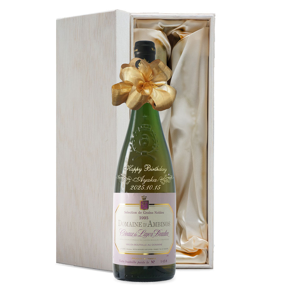 1995年に収穫されたブドウで作られた生まれ年ワインに、名前やメッセージを彫刻して贈る、特別なオーダーメイドギフト。誕生日や記念日に、世界でひとつだけの感動をお届けします。