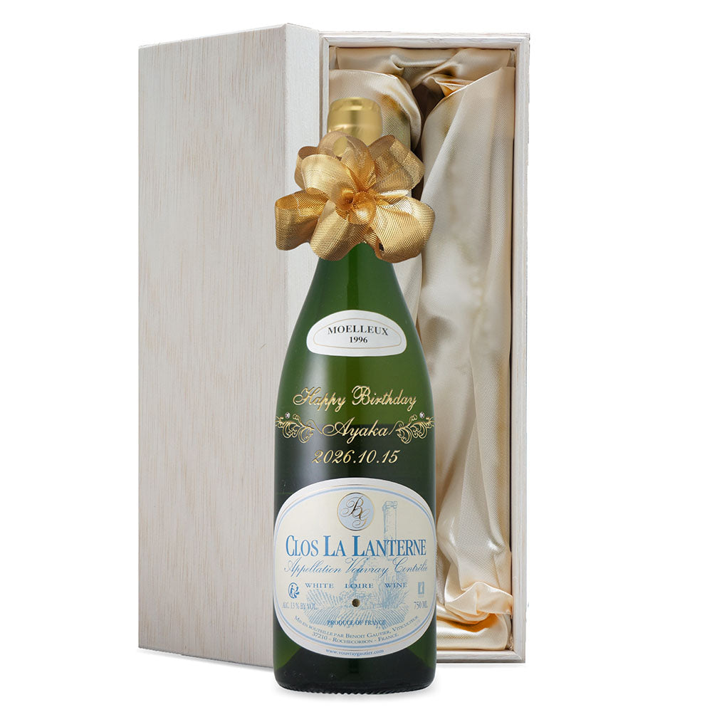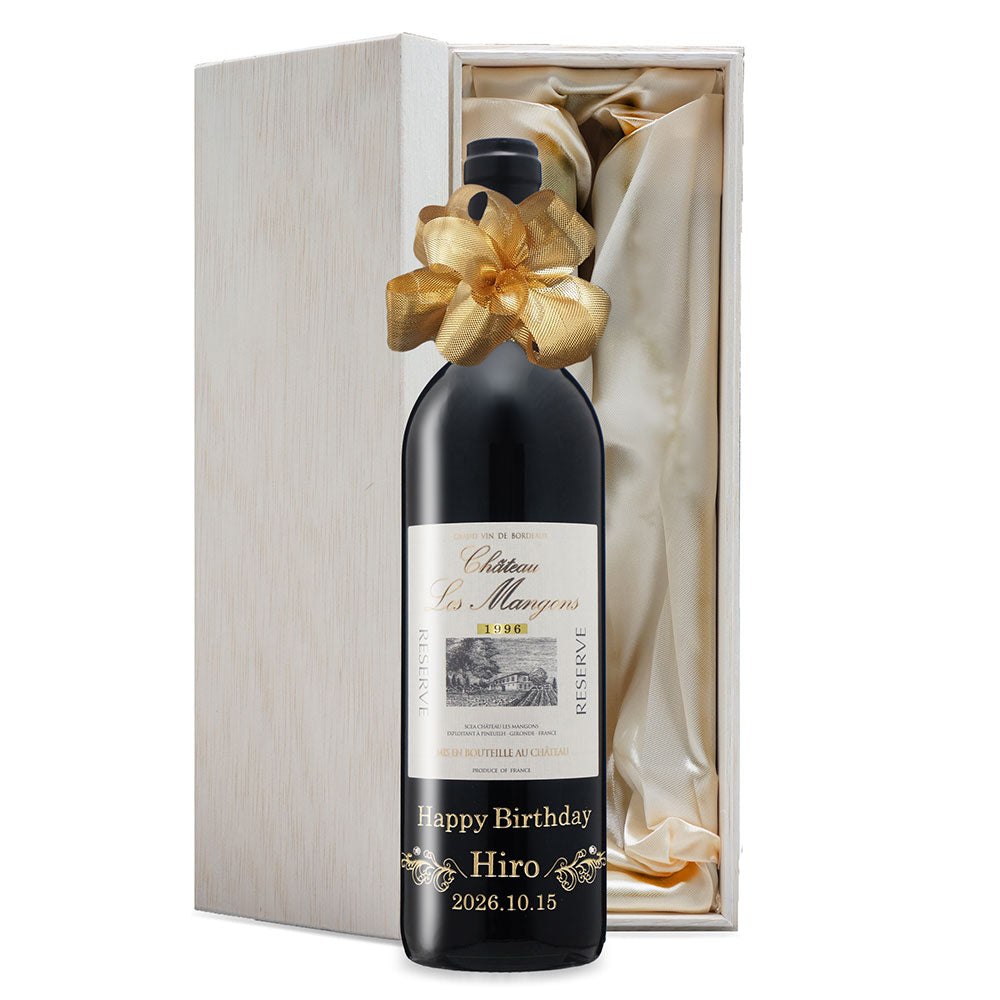1996年に収穫されたブドウで作られた生まれ年ワインに、名前やメッセージを彫刻して贈る、特別なオーダーメイドギフト。誕生日や記念日に、世界でひとつだけの感動をお届けします。