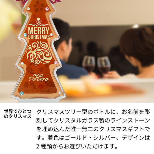 クリスマスツリーワイン 名前入り彫刻 イルミネーションLED付