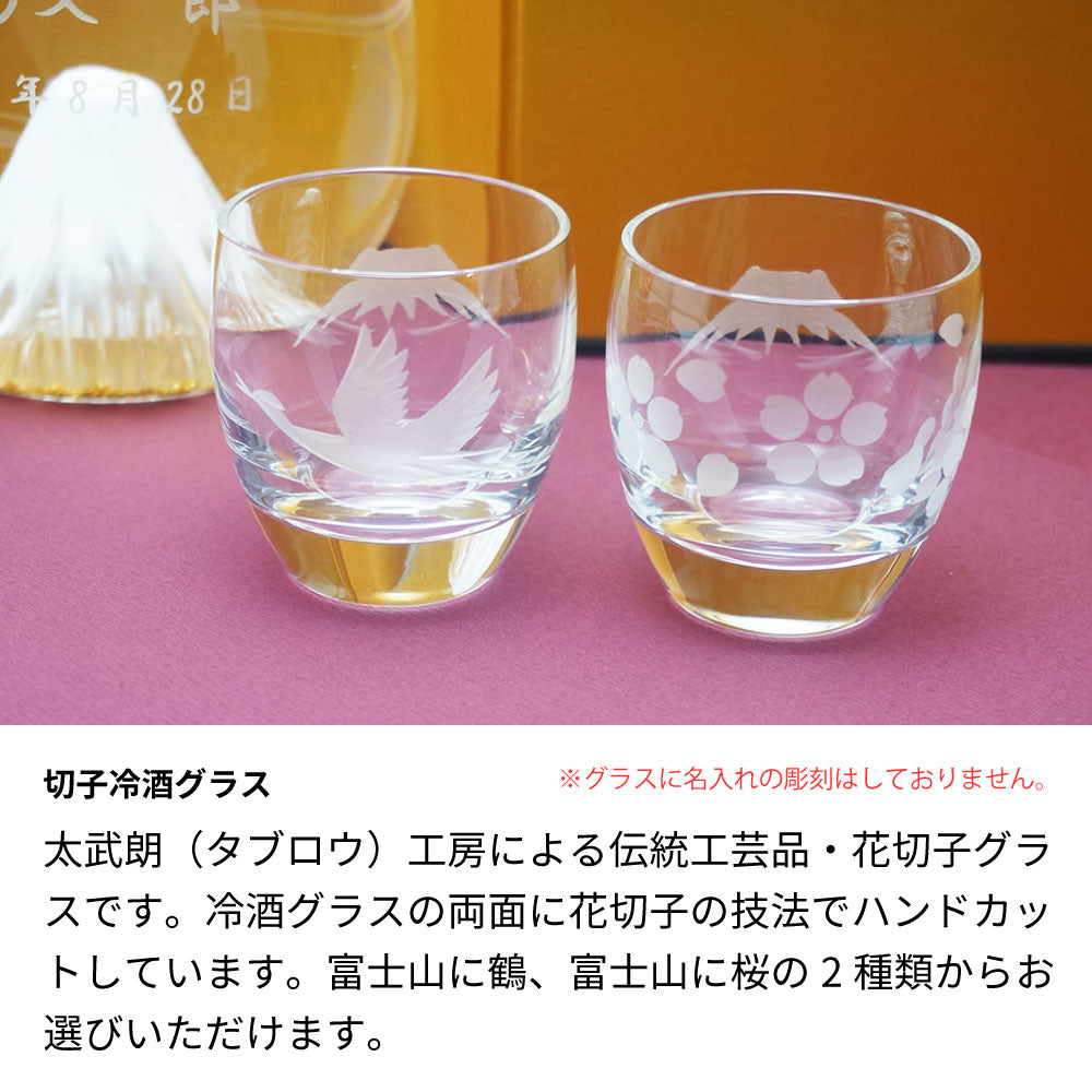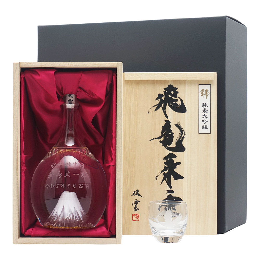 富士山のお酒と冷酒グラスのセット 飛竜乗雲 金箔入り 名前入り彫刻