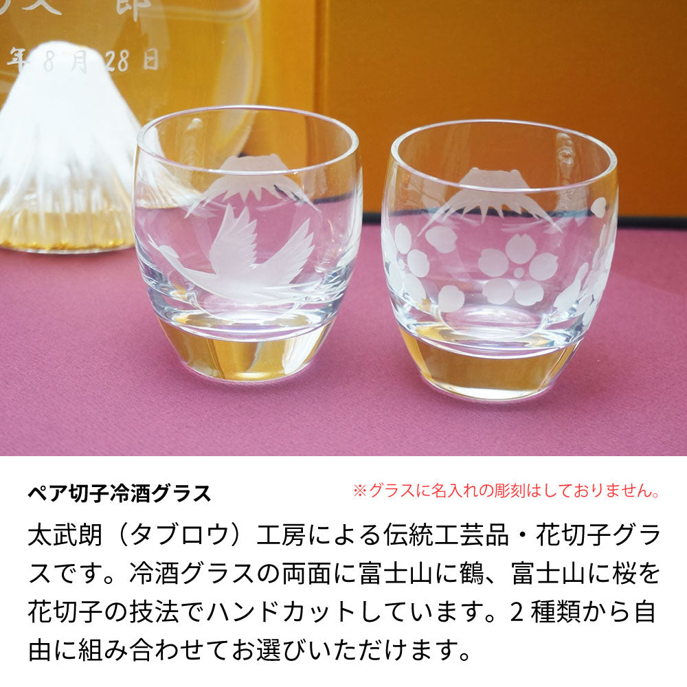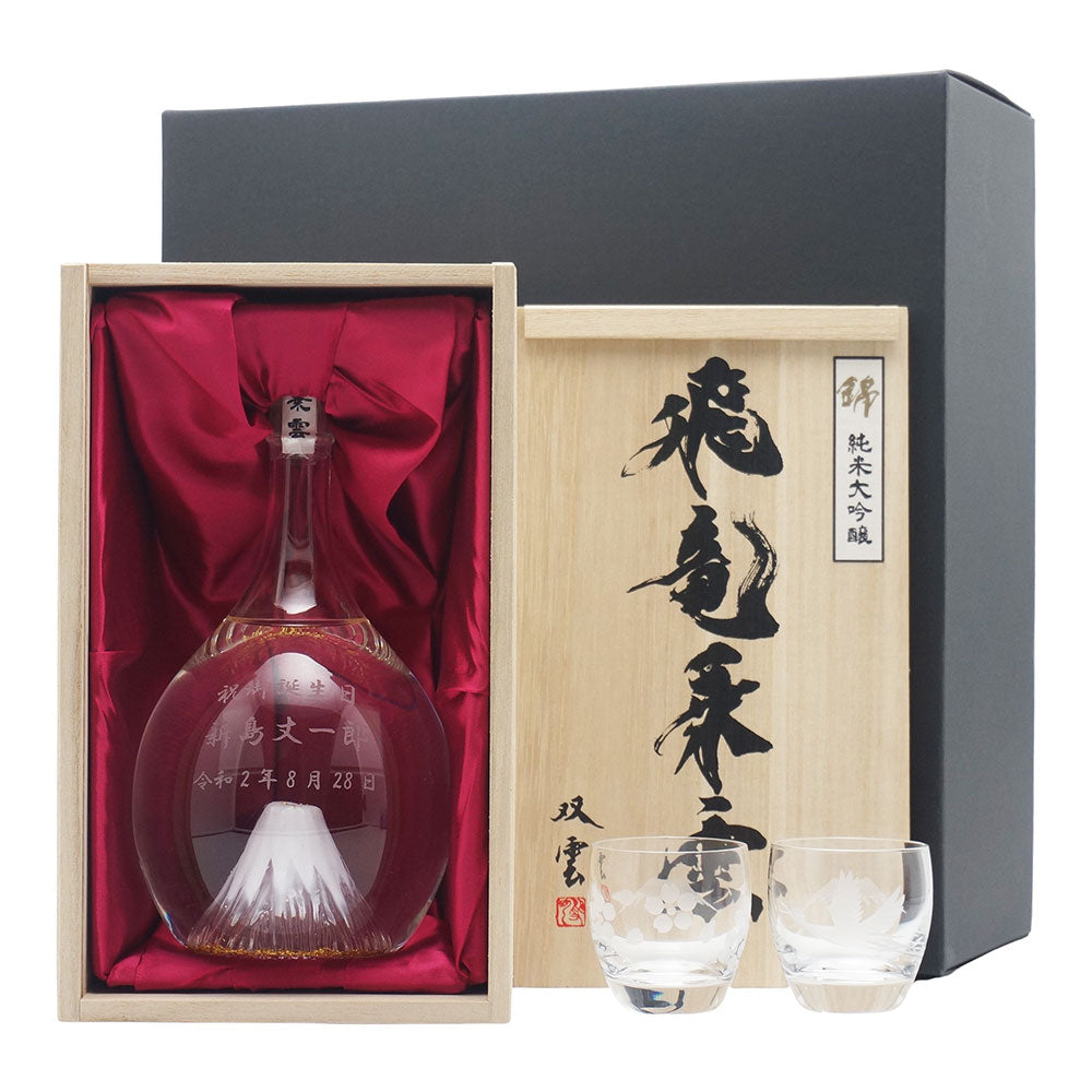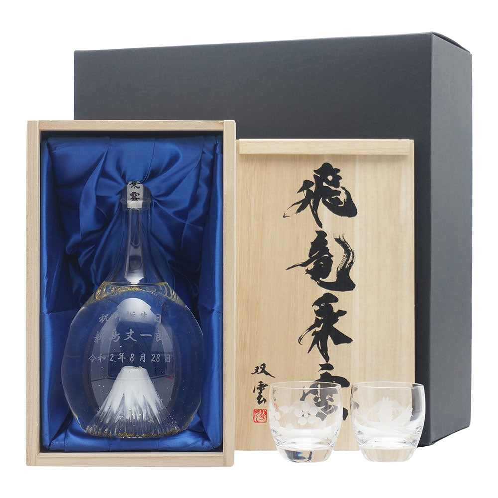 富士山のお酒とペア冷酒グラスのセット 飛竜乗雲 金箔入り 名前入り彫刻