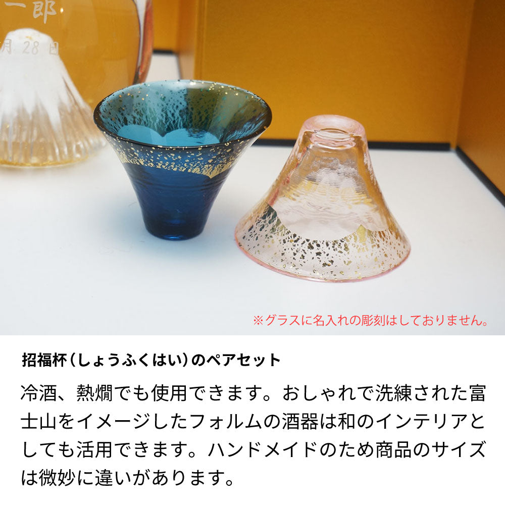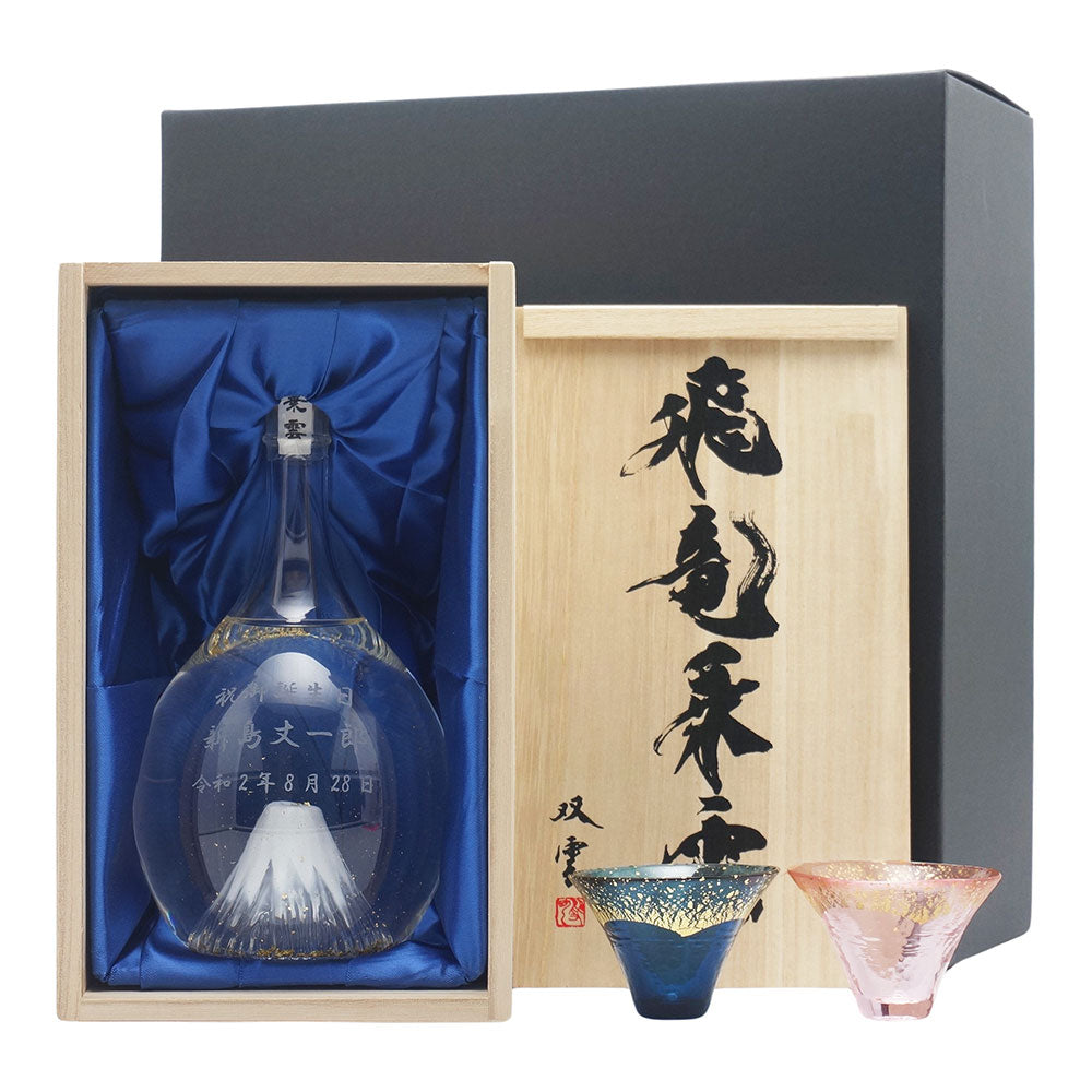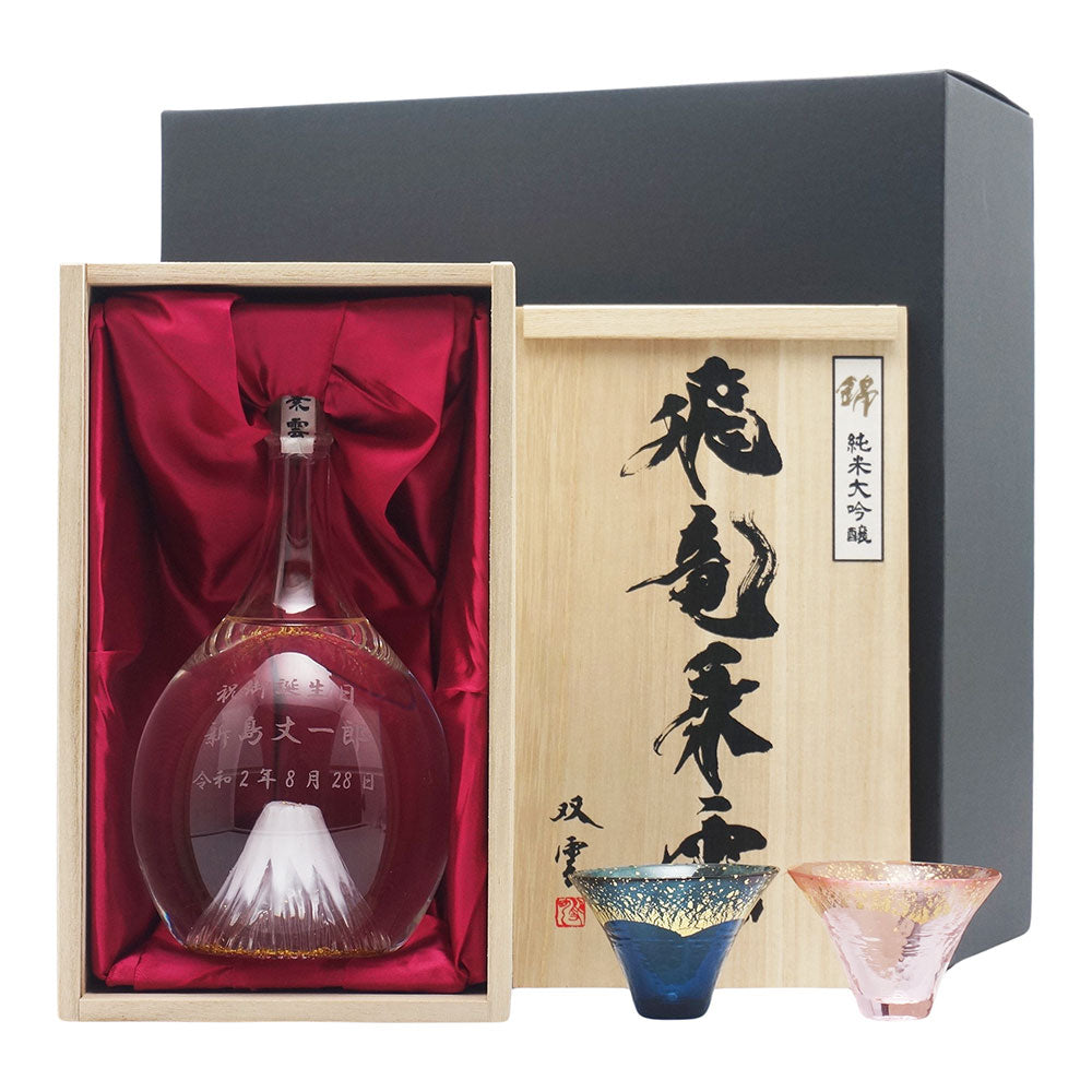 富士山のお酒とペア招福杯のセット 飛竜乗雲 金箔入り 名前入り彫刻