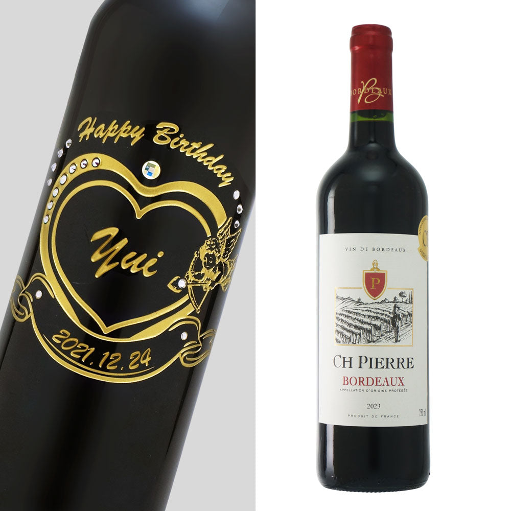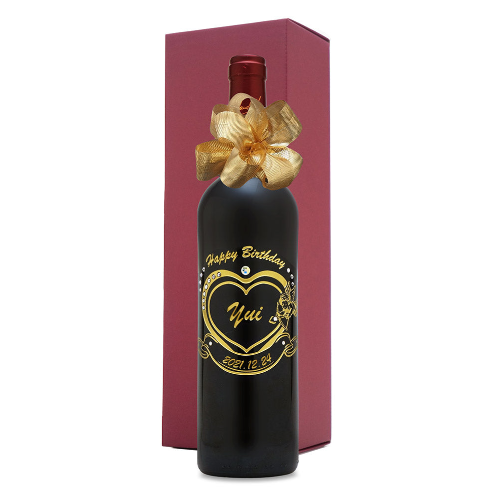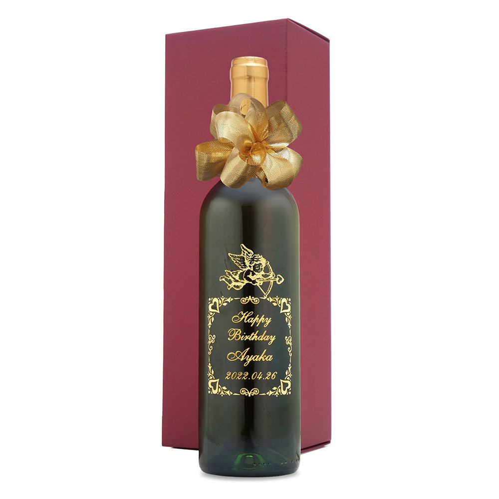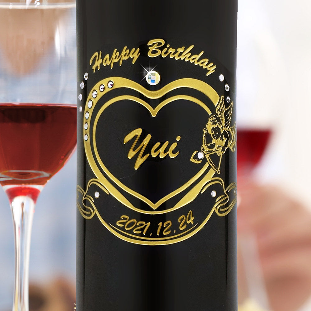 名入れ彫刻 ハートとエンジェルのワイン 誕生日 結婚祝