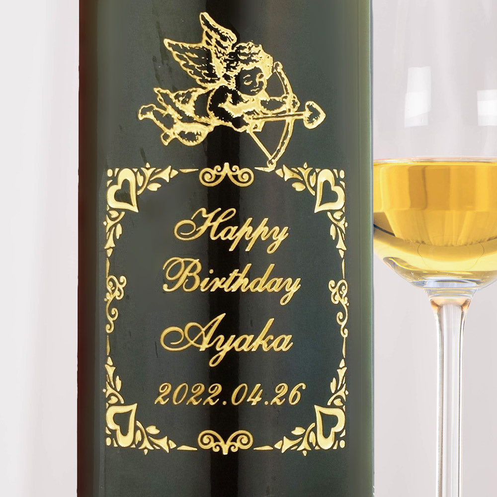 ワインボトルに、お祝いにふさわしい人気のハートとエンジェルをイメージしたデザイン、メッセージやお名前を彫刻して、唯一無二のオリジナルギフトをお作りします。