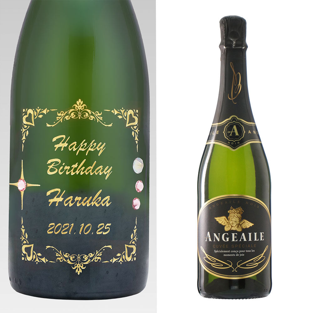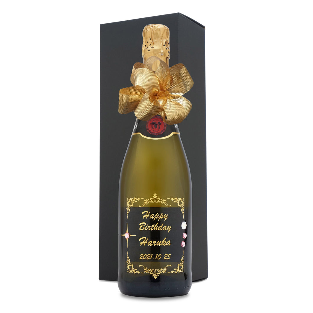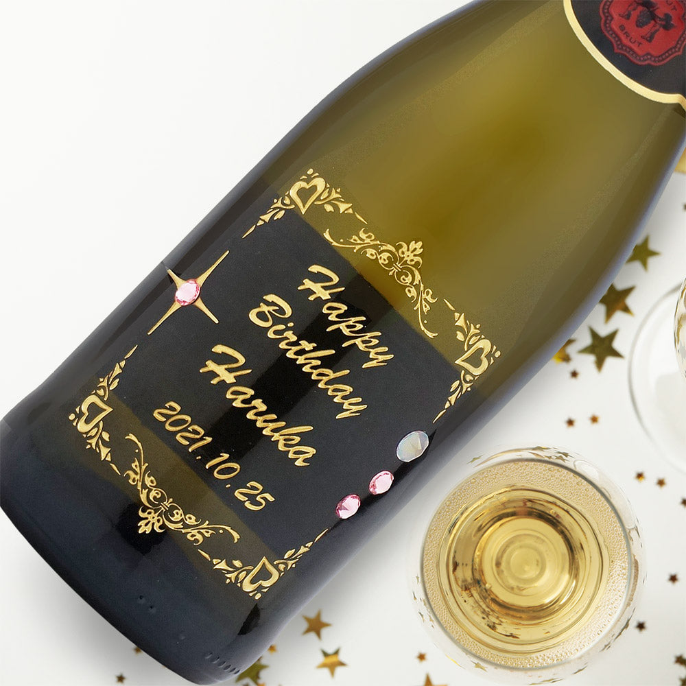 当ショップ厳選のスパークリングワインに、名前とオリジナルメッセージを彫刻、ラインストーンをデコレーションした特別な贈りものです。