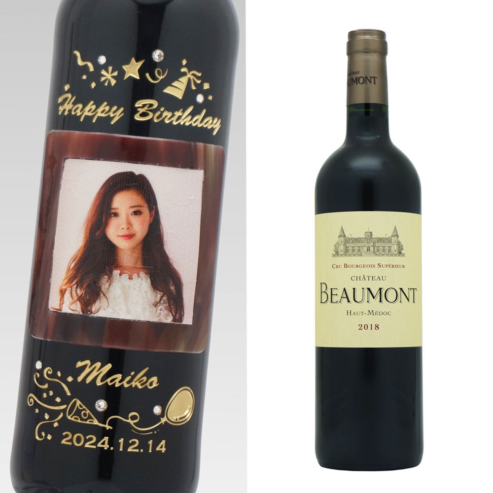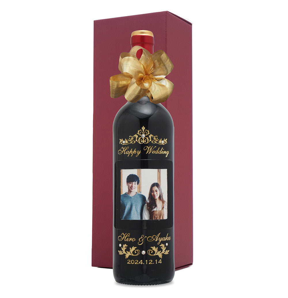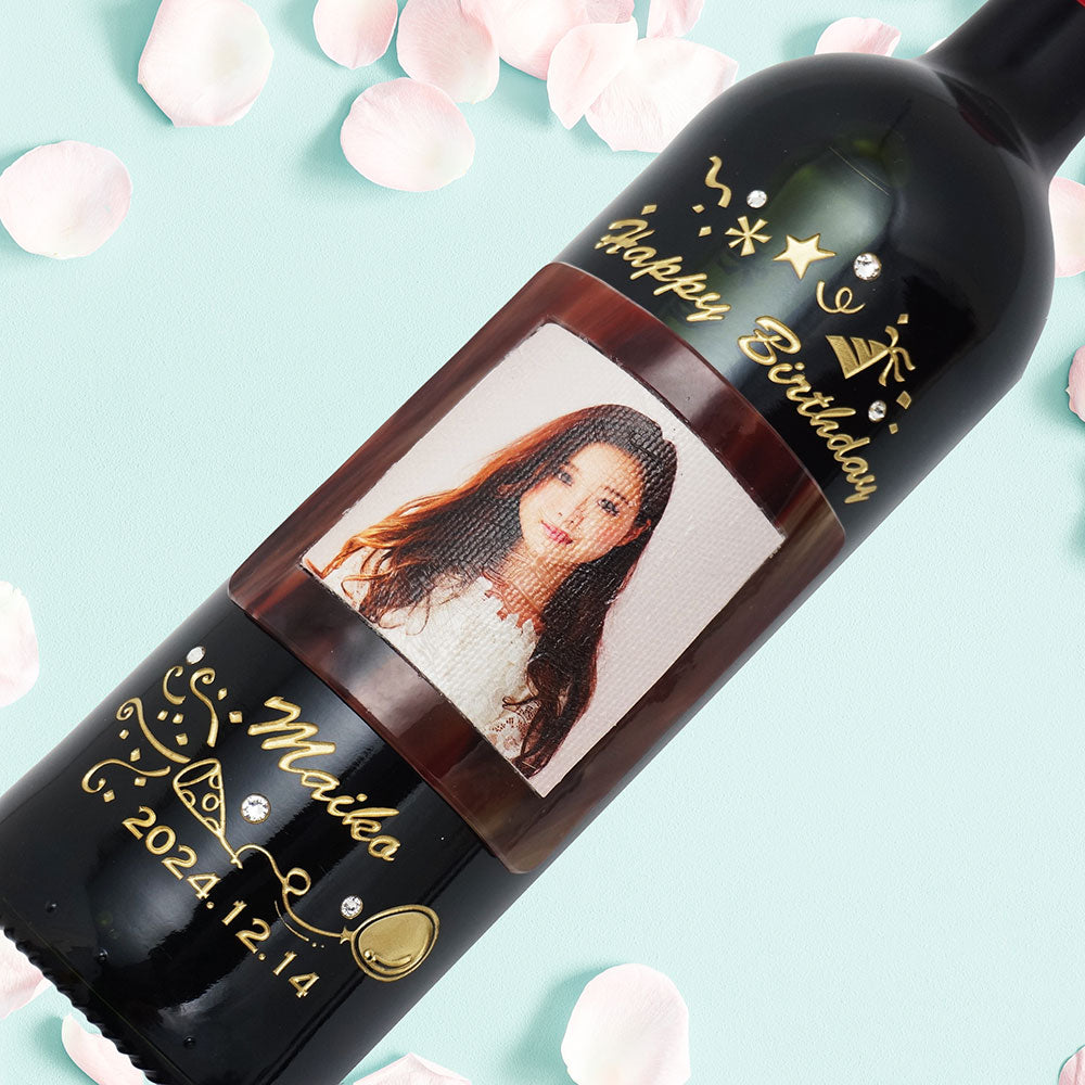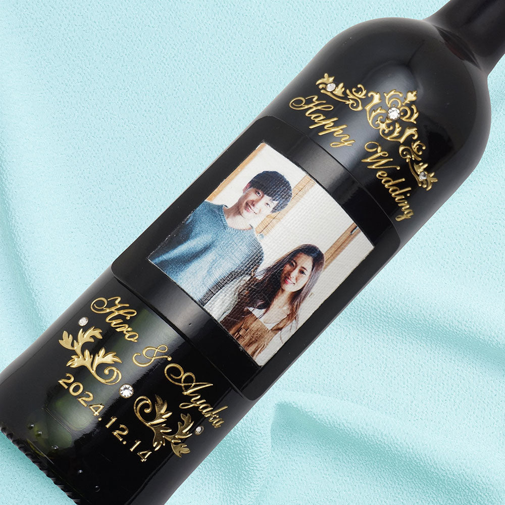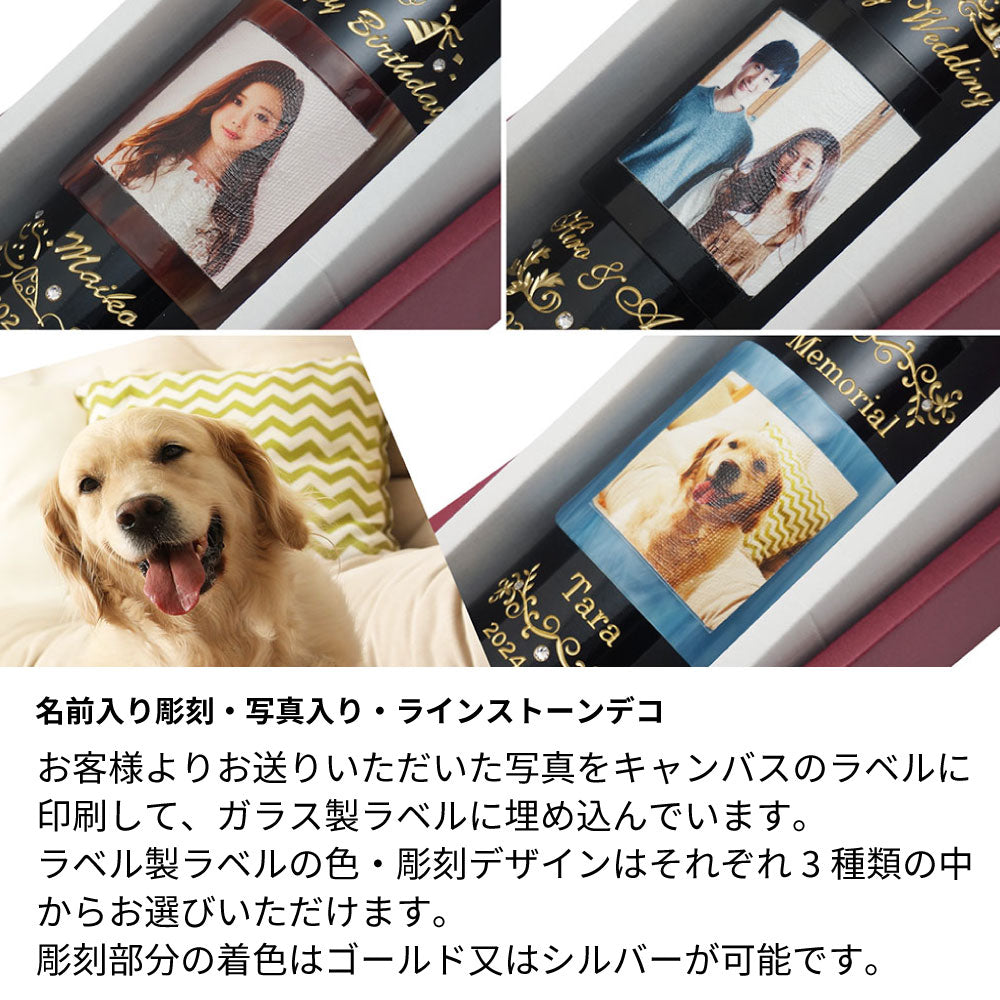 写真 名前入り彫刻ワイン ラインストーンデコ 誕生日 結婚祝 メモリアル