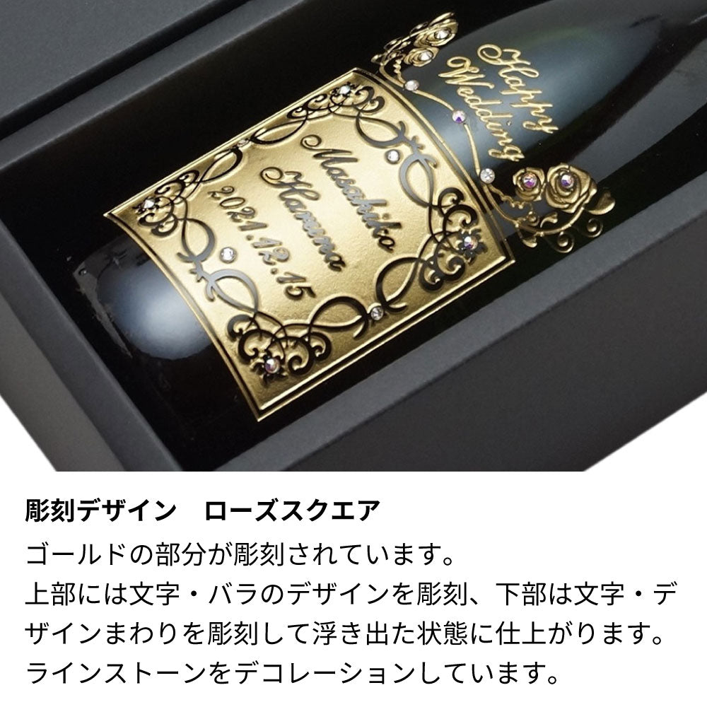 名前入り彫刻 高級シャンパン 750ml ローズスクエア クラウンシャイン ラインストーンデコ
