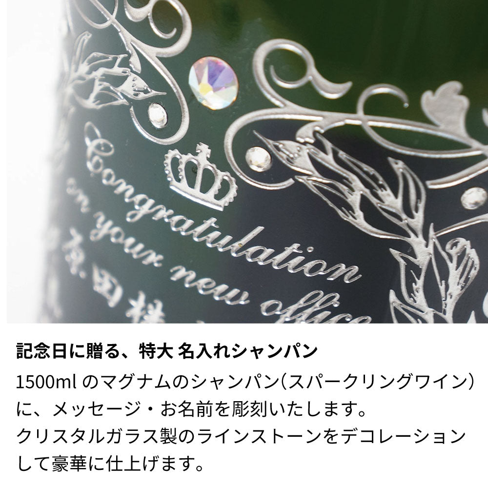 高級シャンパン1500ml(マグナムボトル)にお名前とメッセージを彫刻するオリジナルギフトです。