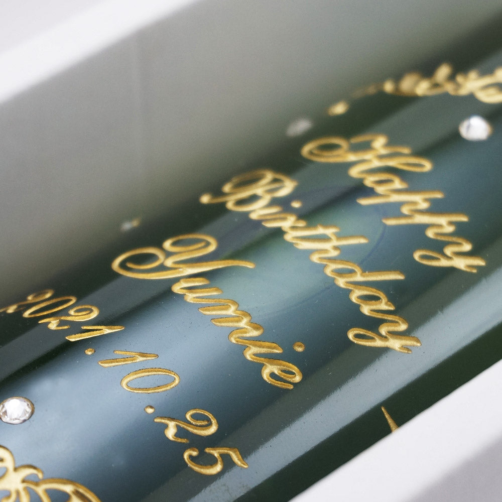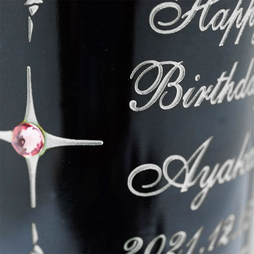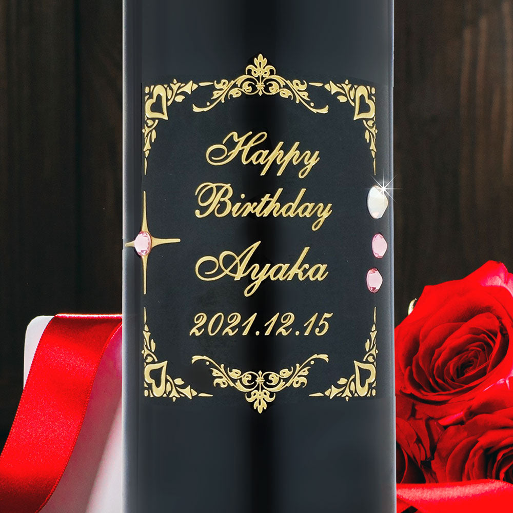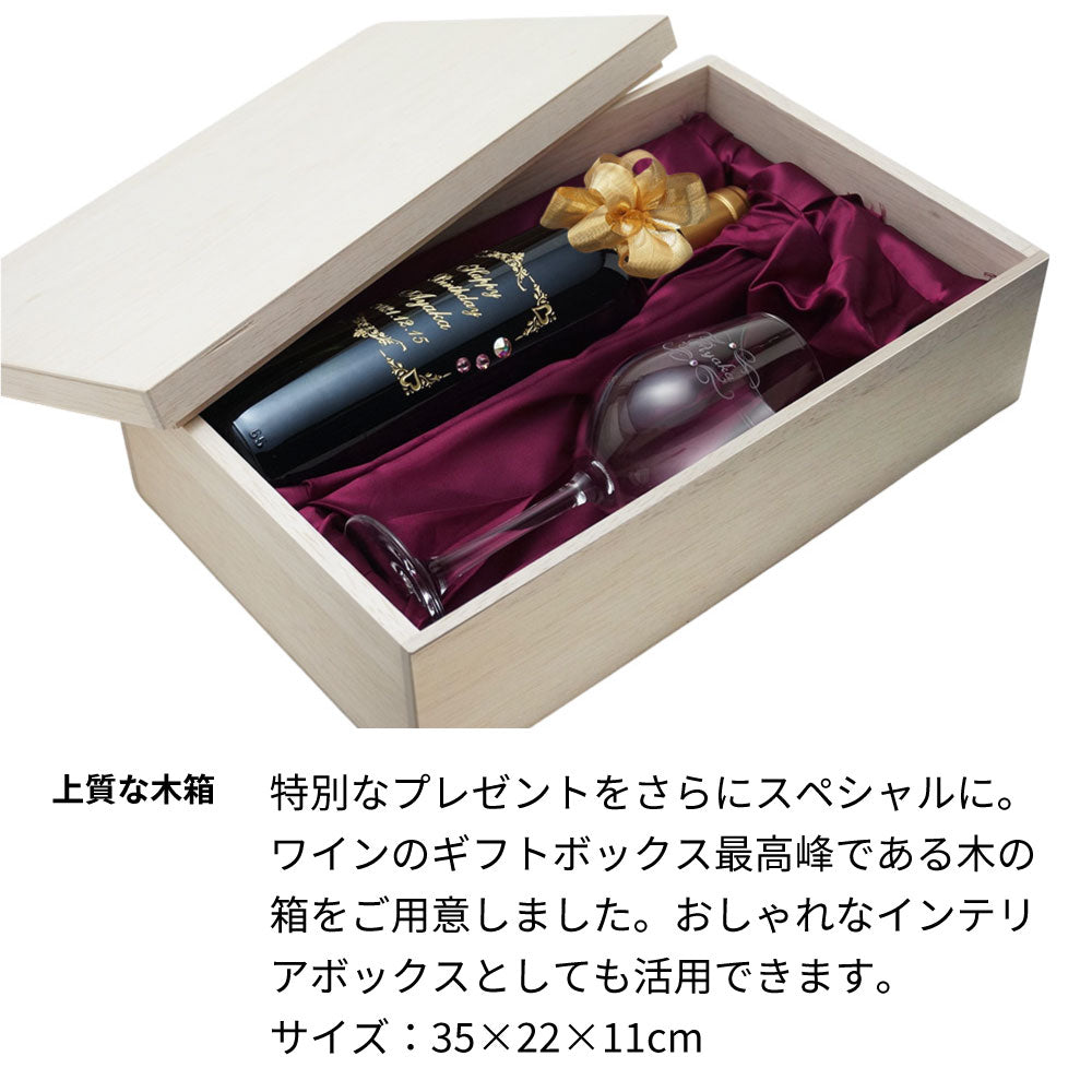当ショップ厳選の赤ワイン又は白ワイン、グラスに、名前とオリジナルメッセージを彫刻、ラインストーンをデコレーションした特別な贈りものです。