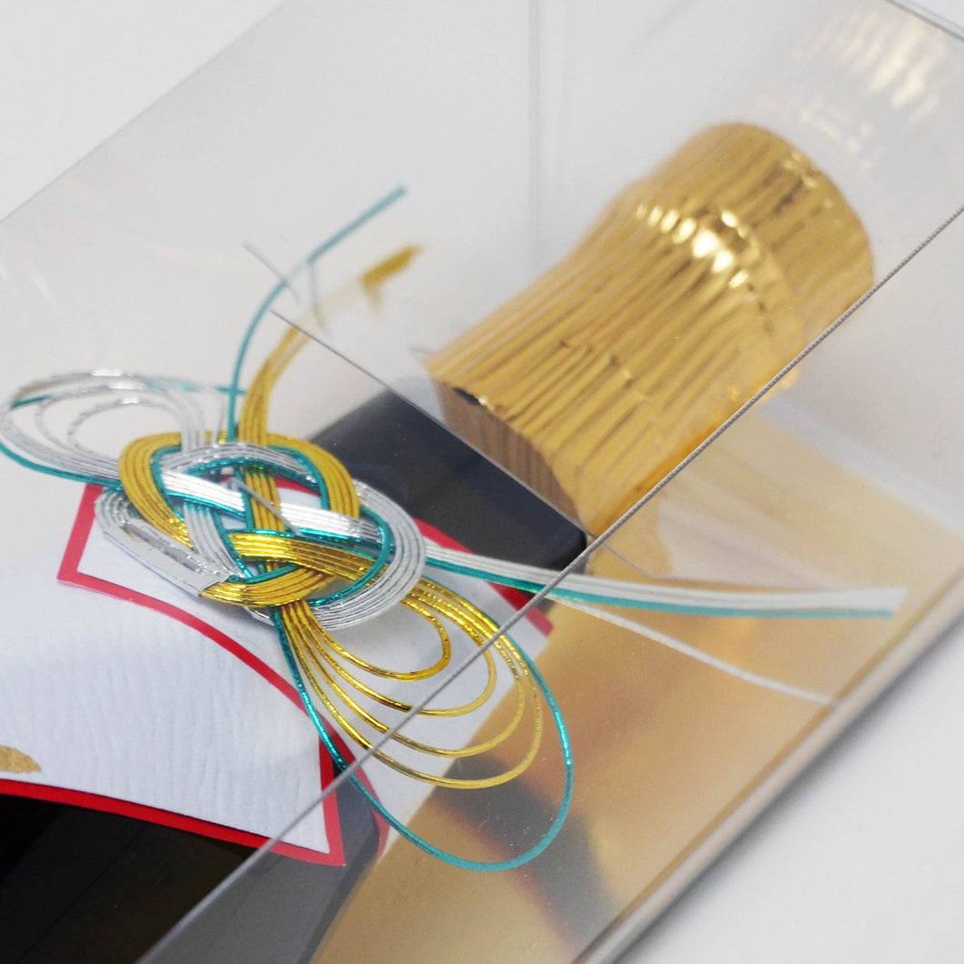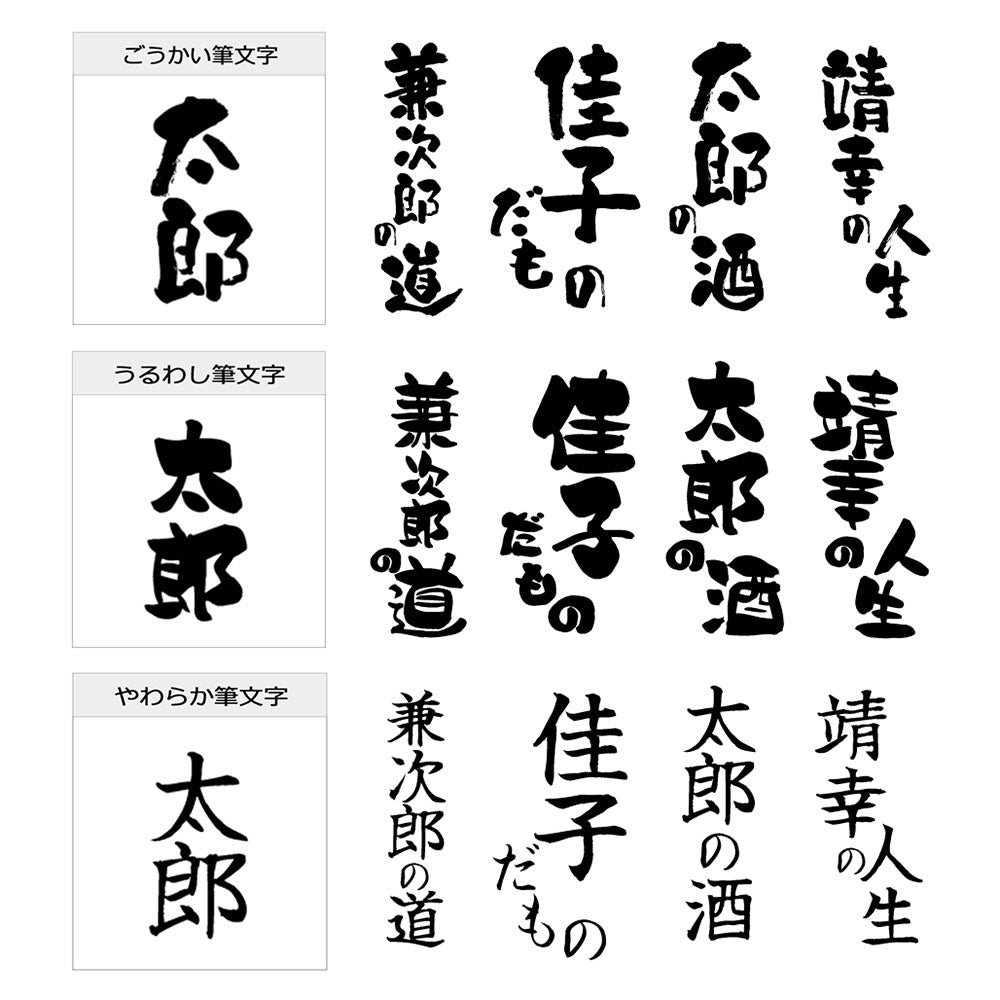 日本酒に筆文字の名前入りラベルを貼ってお届けいたします。