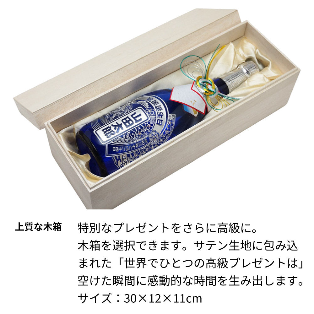 沖縄県北部の名護市にある龍泉酒造で造られた泡盛です。沖縄の青い海や空をイメージした、色鮮やかな青いボトルにお名前・メッセージを彫刻、クリスタルガラス製のラインストーンをデコレーションして世界でひとつのオリジナルギフトをお作りします。お誕生日・還暦・古希祝いの贈り物におすすめです。