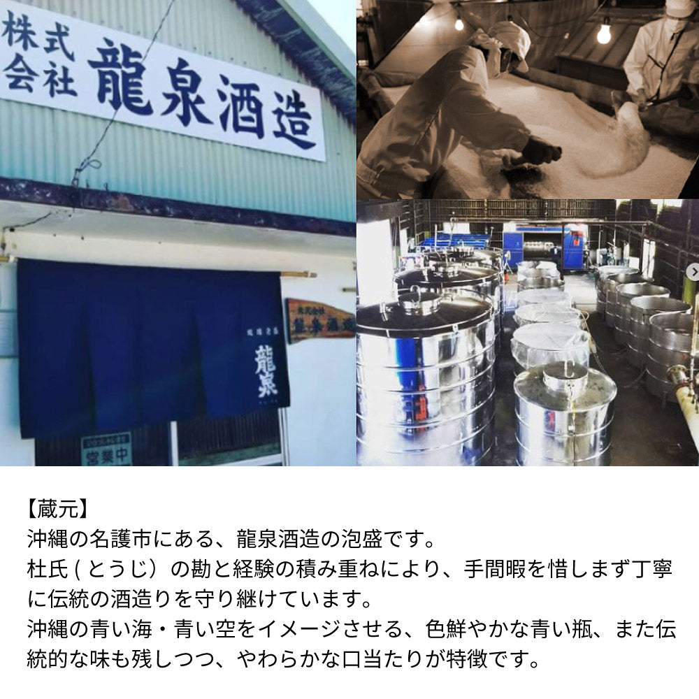 沖縄の青い海・青い空をイメージさせる、色鮮やかな青い瓶が特徴の龍泉ブルー。