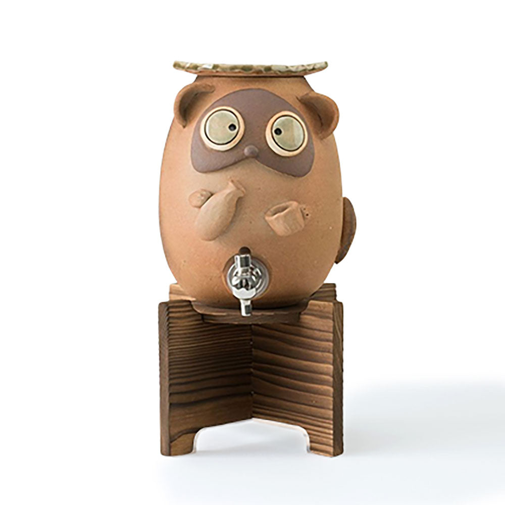 「火色」の素焼きに所々焼き色が付いた風合でたぬきを焼酎サーバー全体に表現しています。たぬきは「た(他)」「ぬき(抜く)」=「他を抜く」という意味に通じ、「商売繁盛の縁起物」として用いられています。