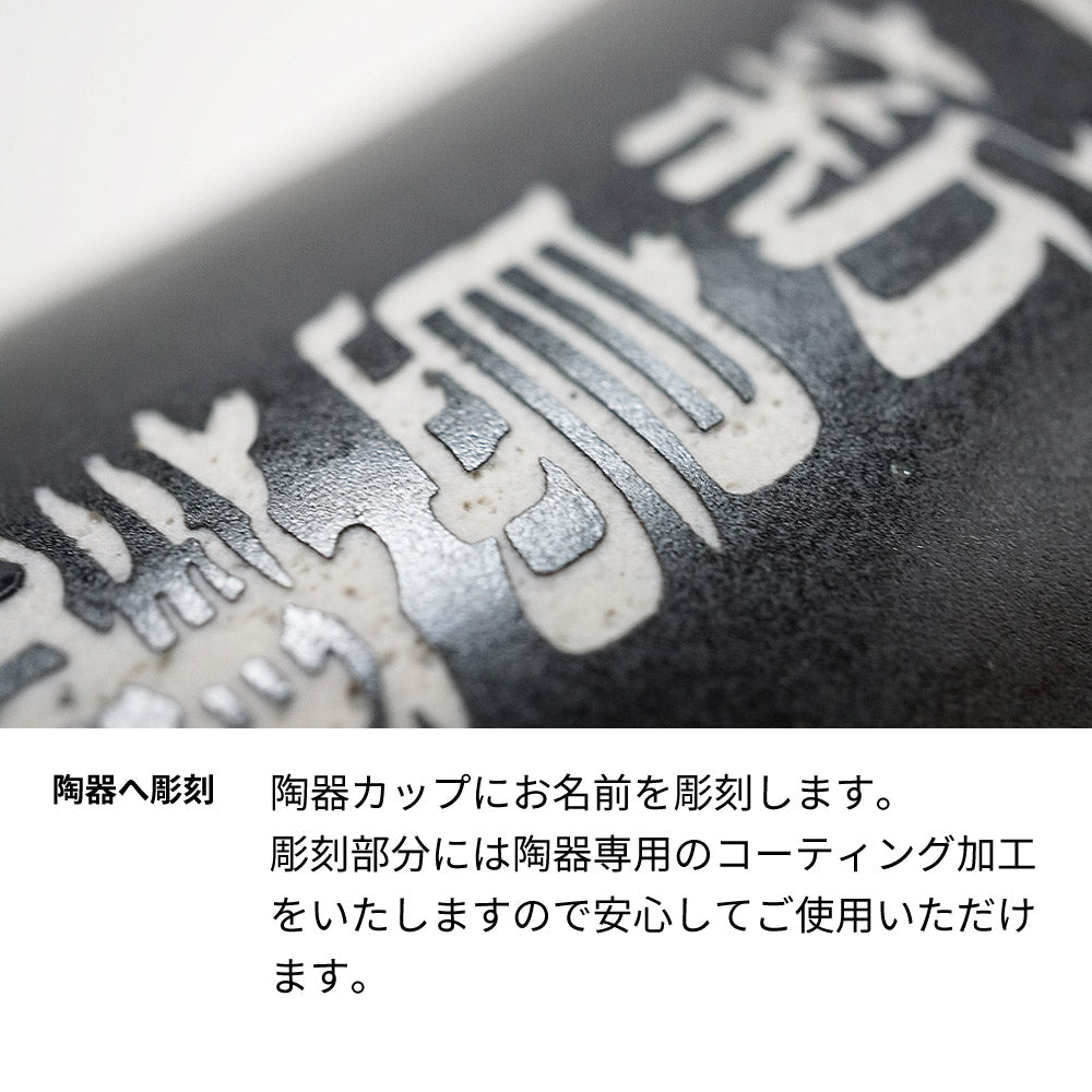 陶器カップにお名前を彫刻いたします。