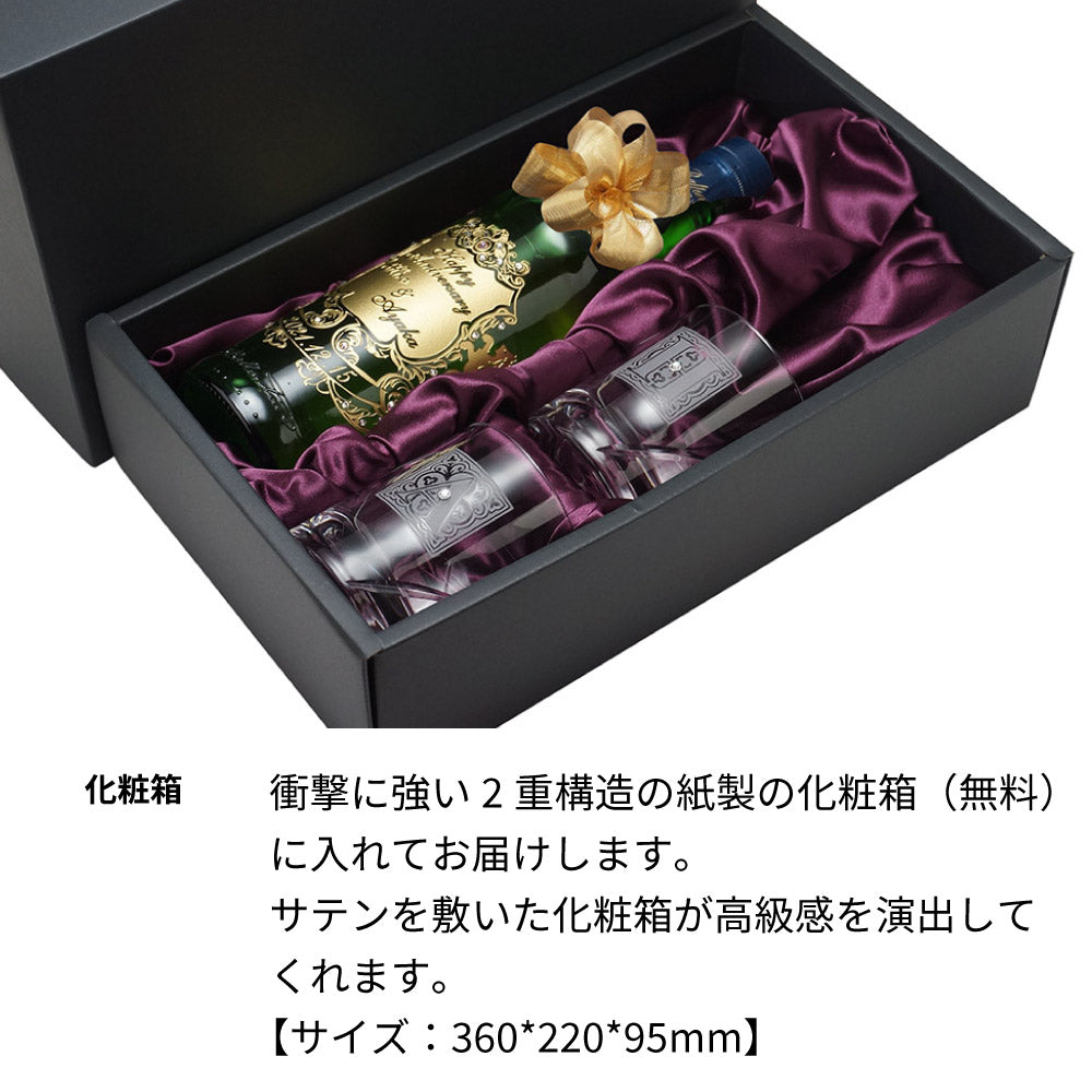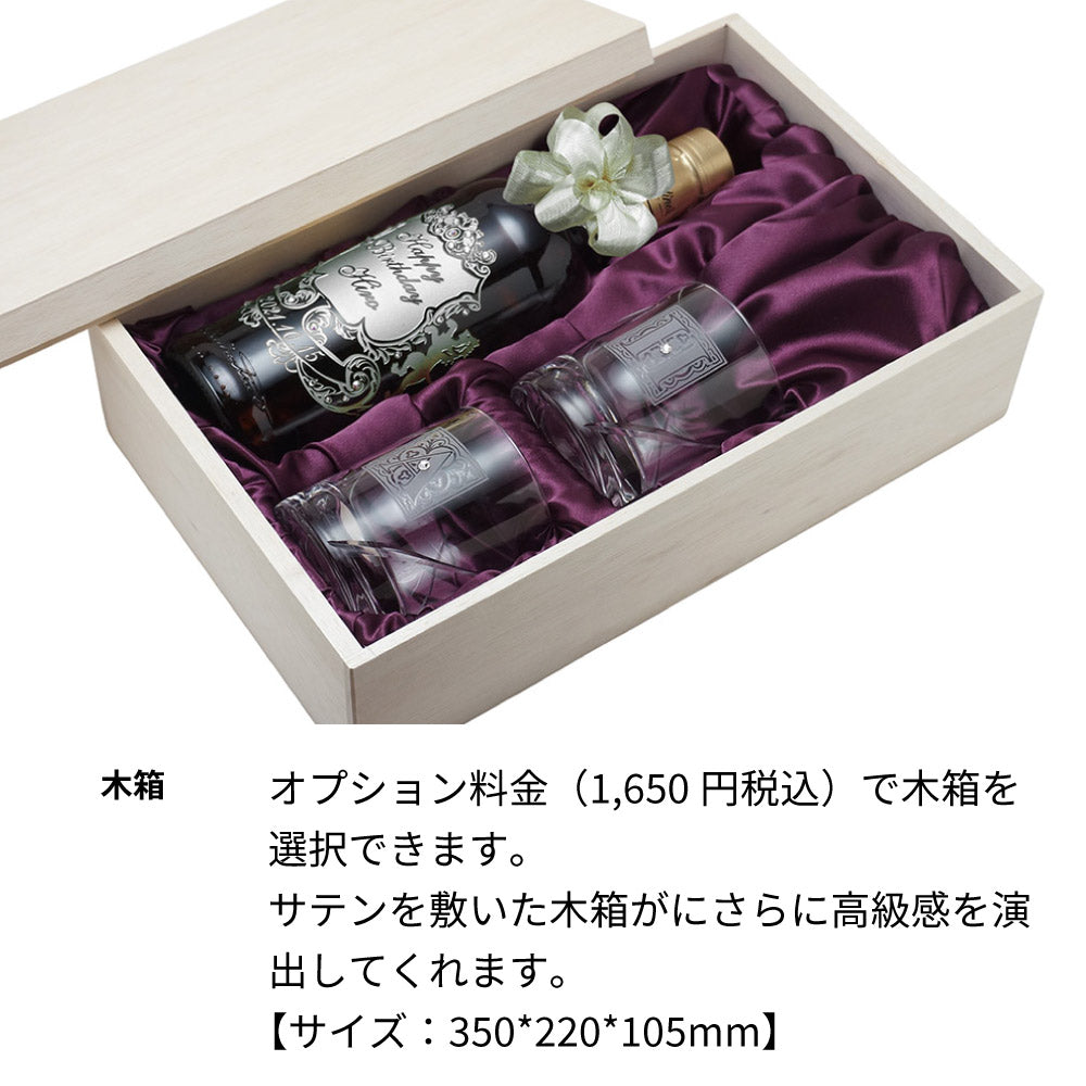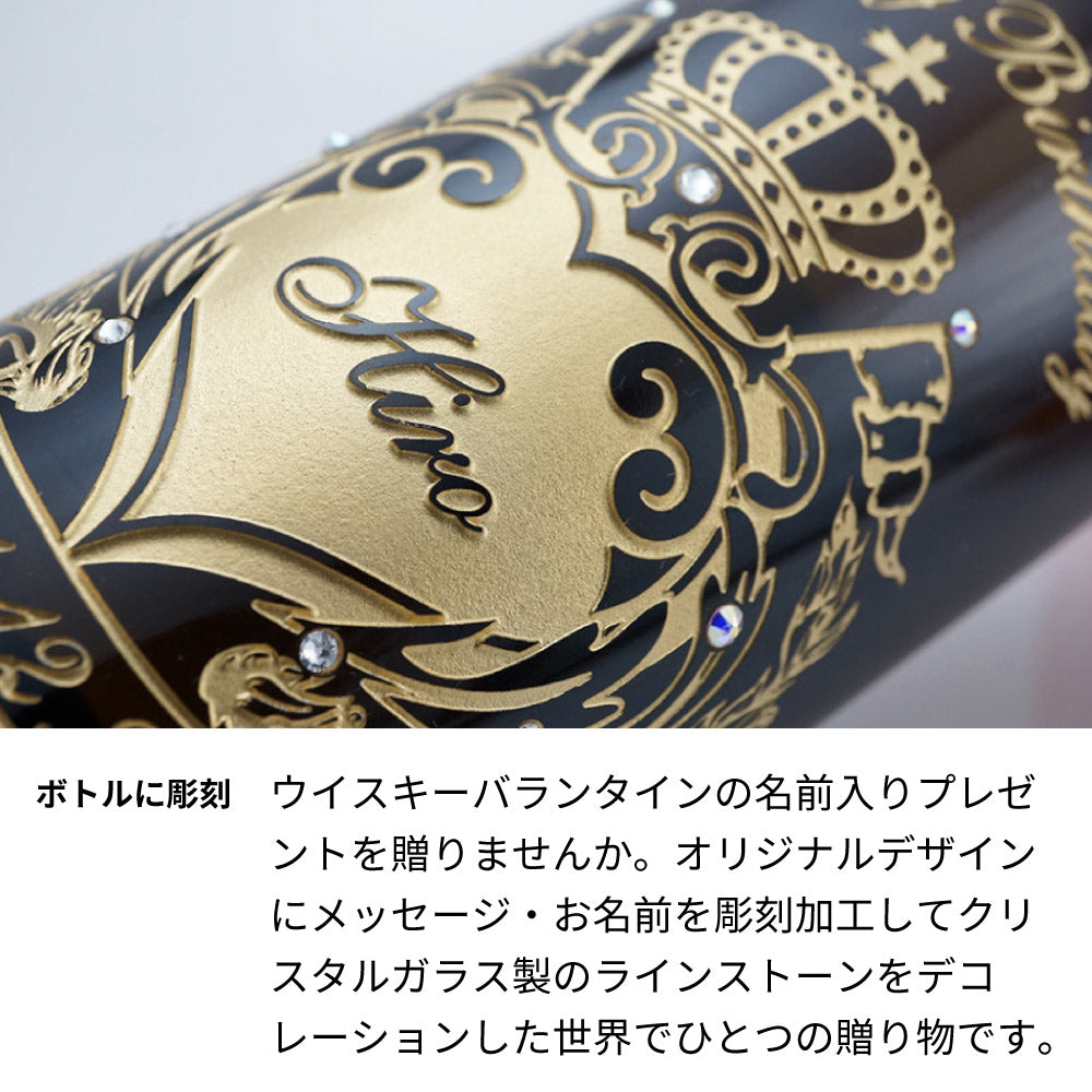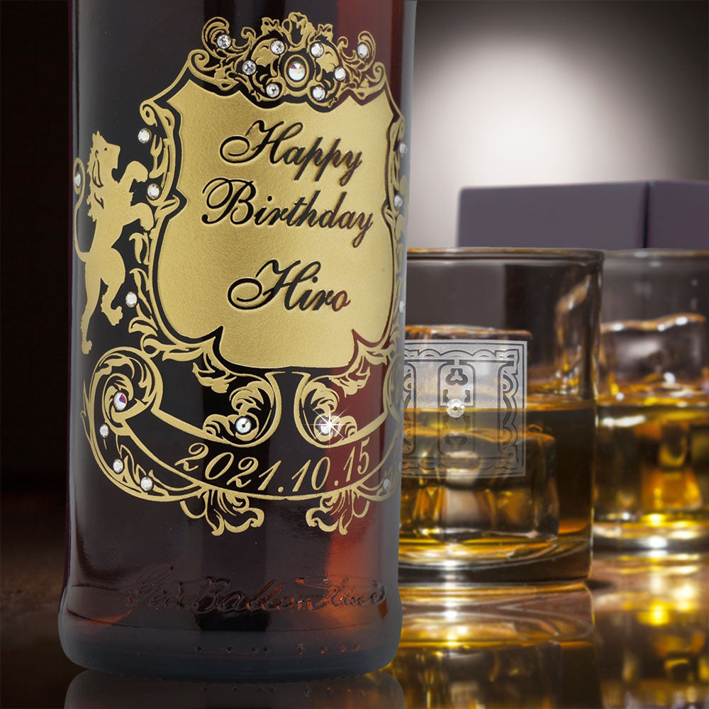 高級ウイスキーのバランタイン17年・21年に、名前とオリジナルメッセージを彫刻、スタイリッシュな切子入りのペアグラスにイニシャルの彫刻、ラインストーンをデコレーションした特別な贈り物です。
