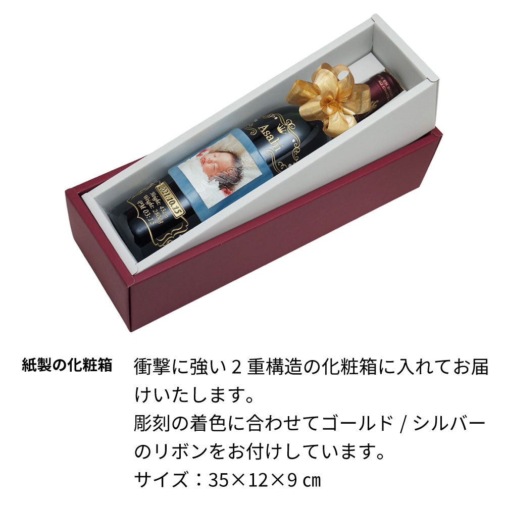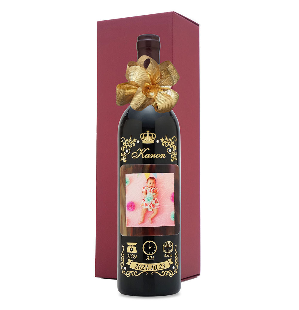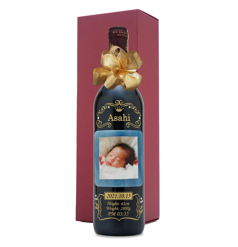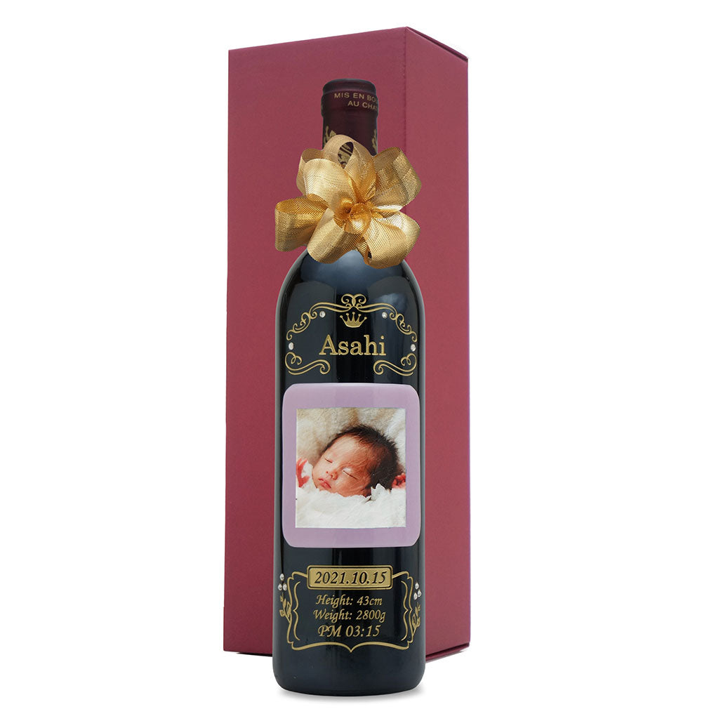 お嬢様がお生まれになった時の記録が刻まれた写真付きのワインは、格別に心に残る贈り物かと存じます。