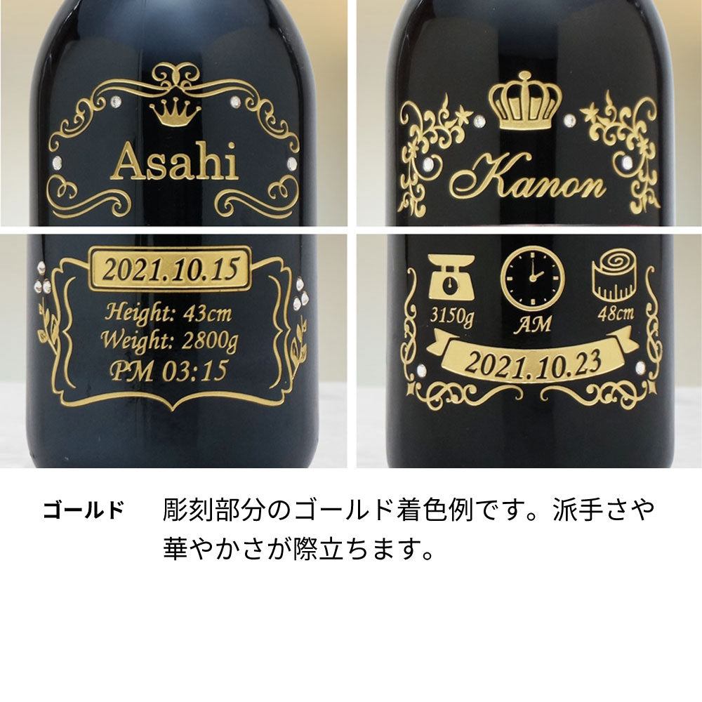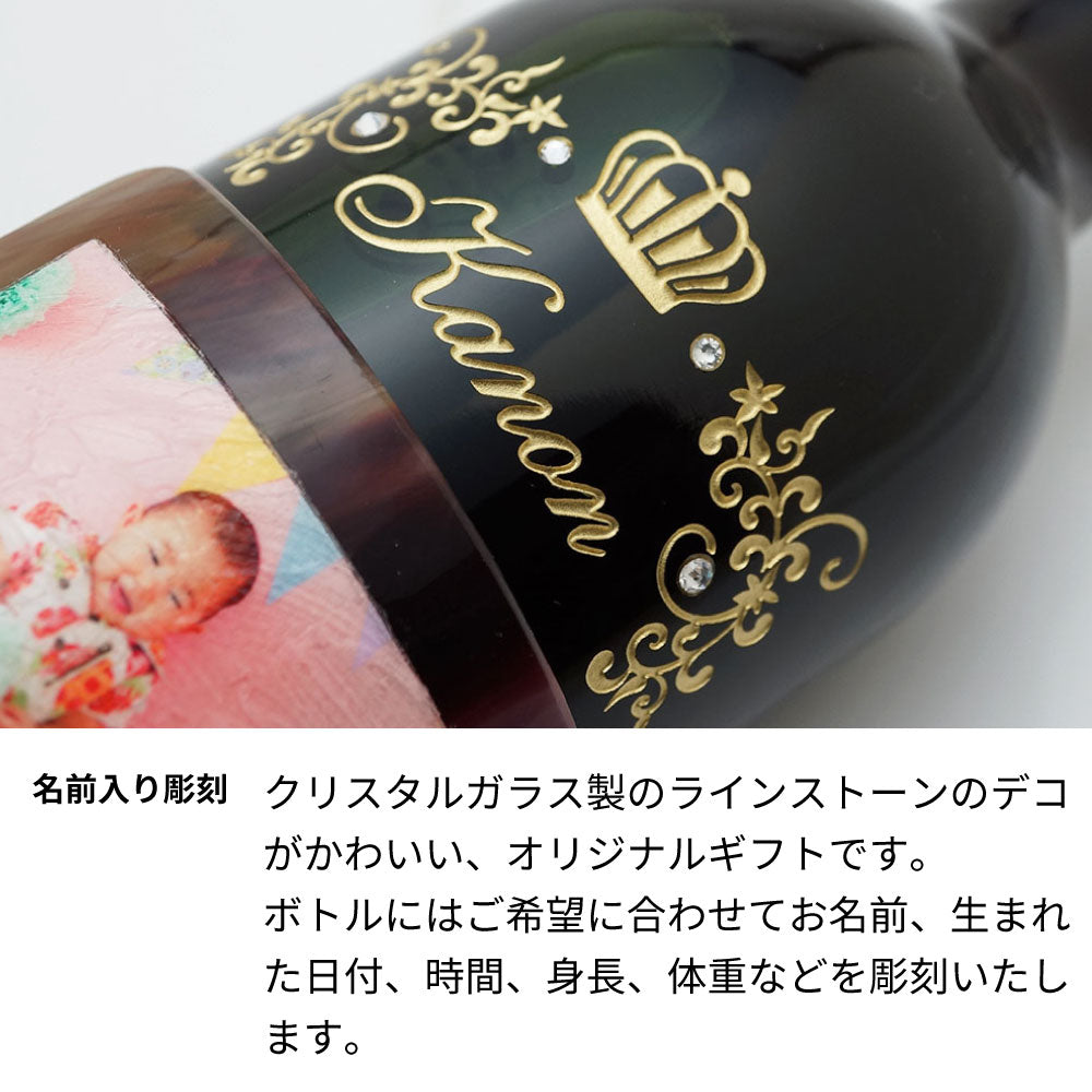 出産祝いワイン 写真/名前入り彫刻 ラインストーンデコ