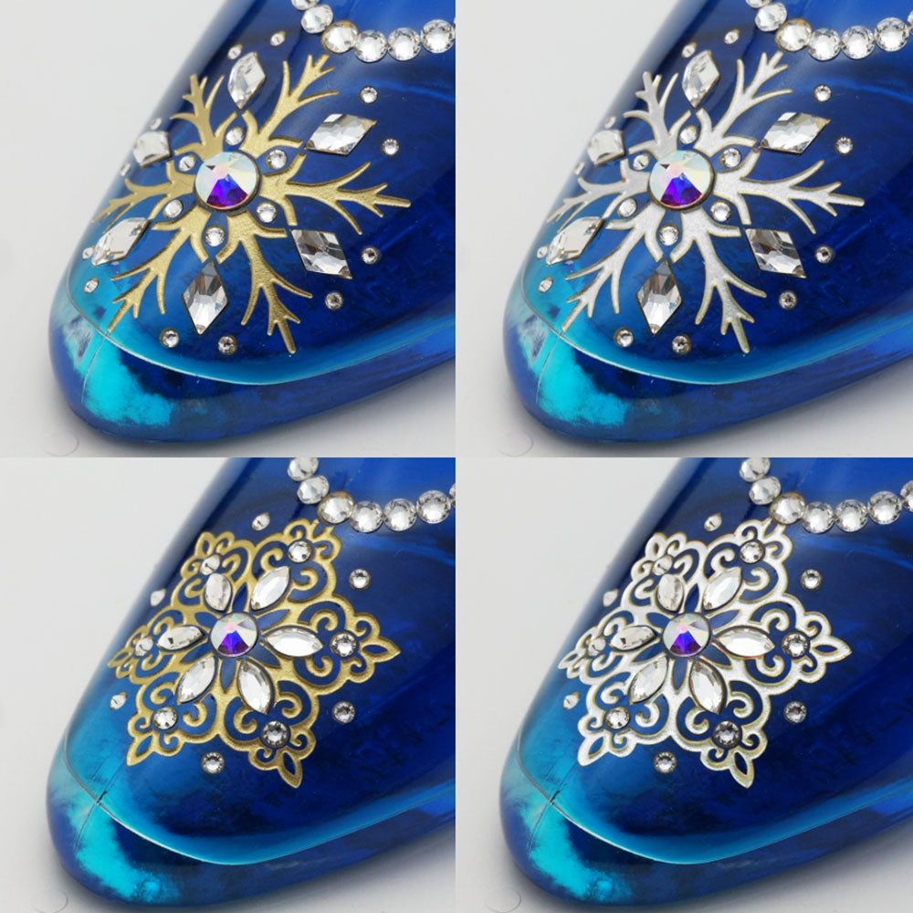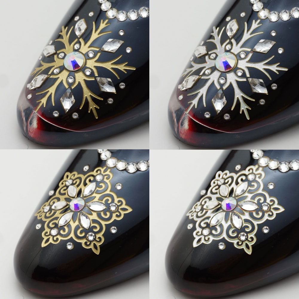 ボトルにメッセージ・お名前を彫刻、クリスタルガラス製のラインストーンを雪の結晶をイメージしてデコレーションしています。