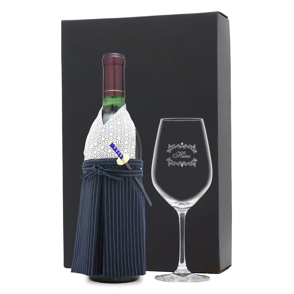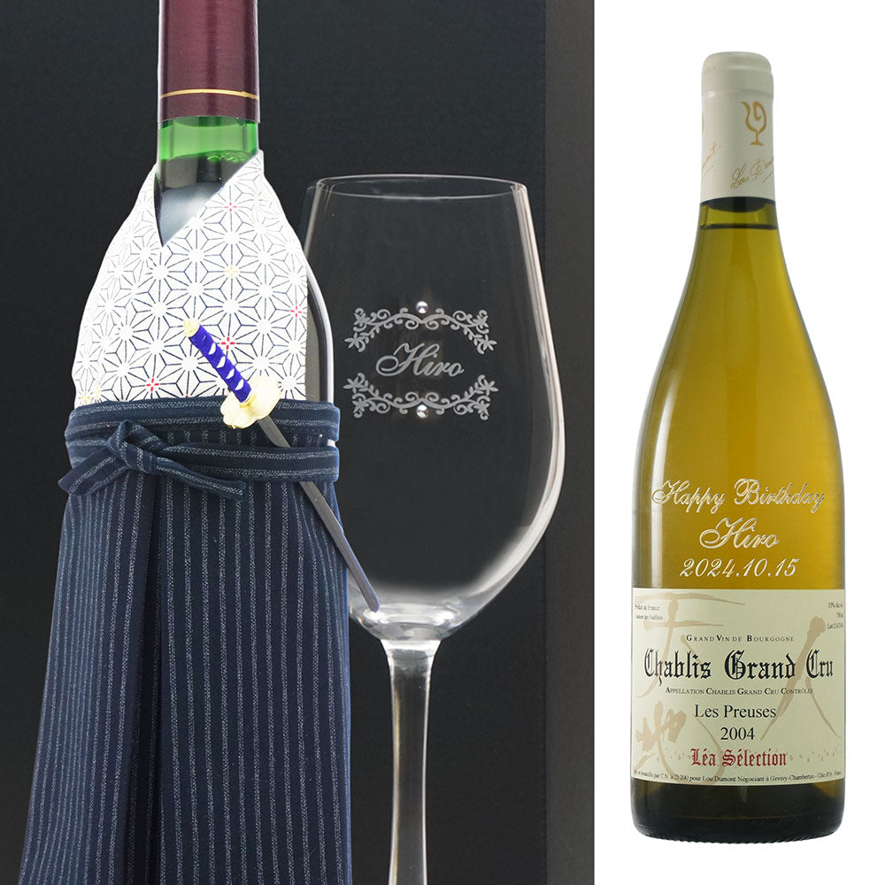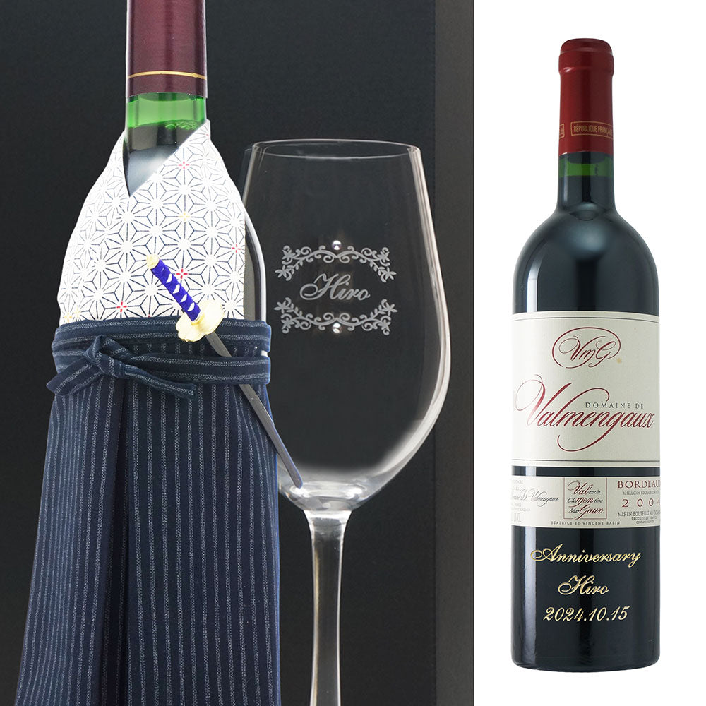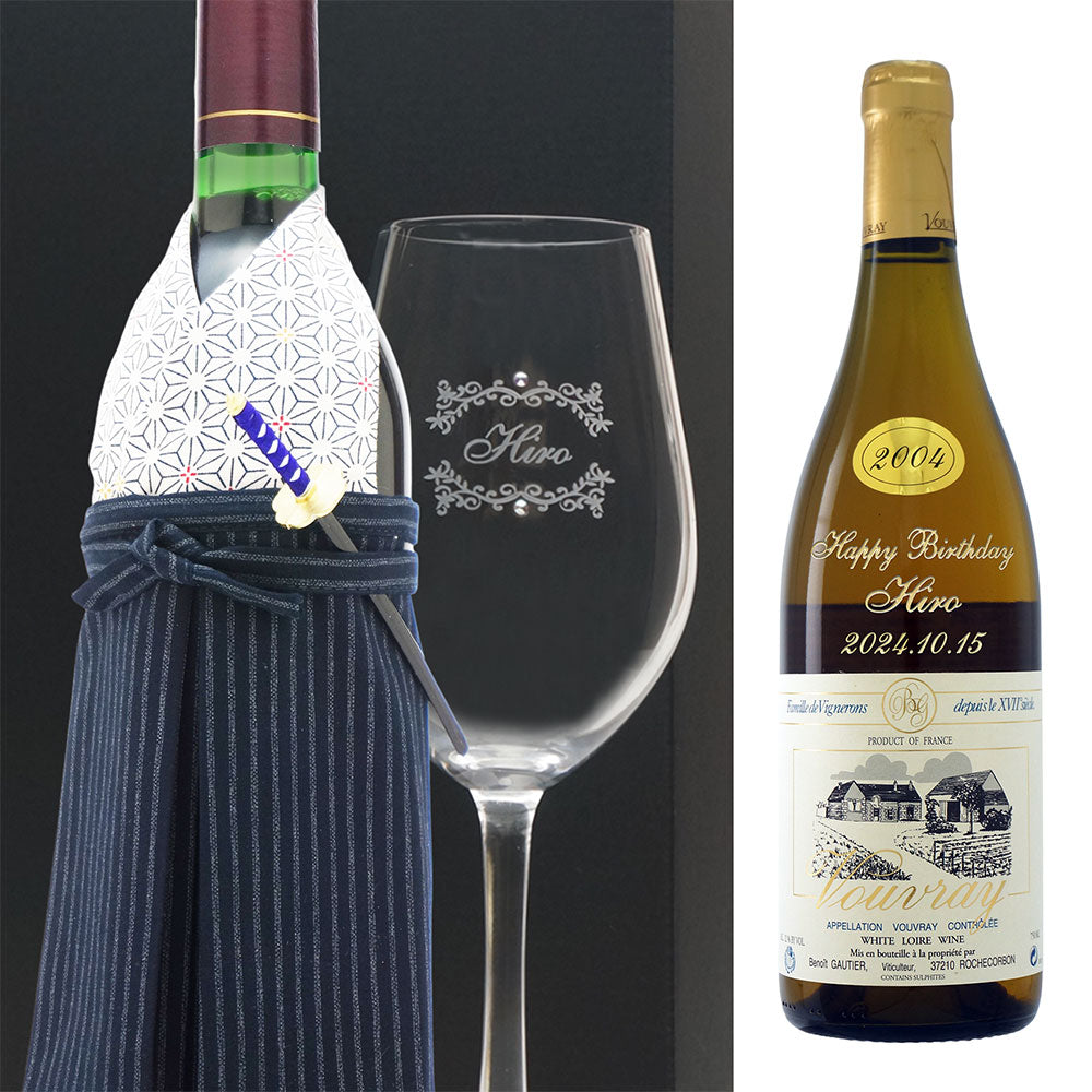 2004年 生まれ年ワイン グラスのセット 名前入り彫刻のお酒 着物付 侍 平成16年