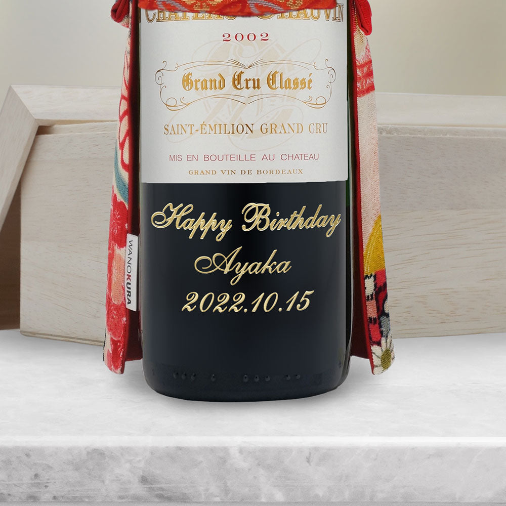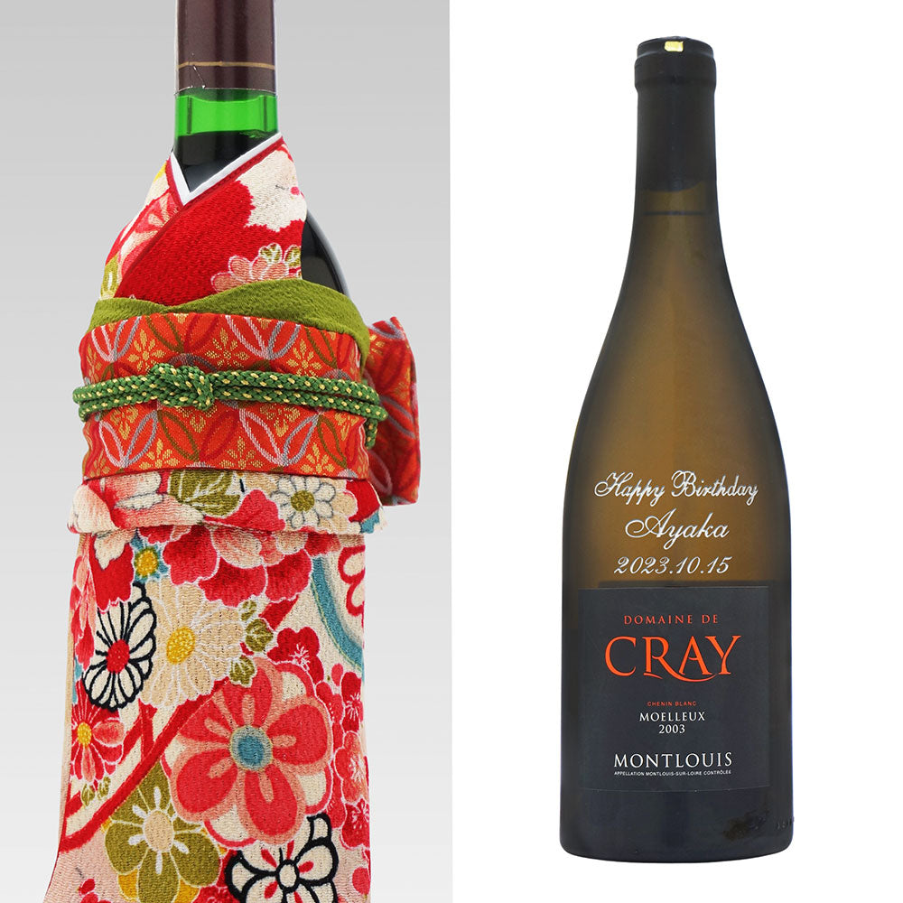 2003年に収穫されたブドウで醸造・熟成された生まれ年ワインに着物をかぶせた「世界に1つ」の贈り物です。