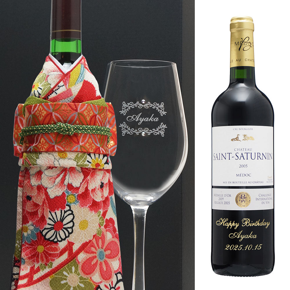 2005年 生まれ年ワイン グラスのセット 名前入り彫刻のお酒 着物付 姫 平成17年 令和7年 20歳
