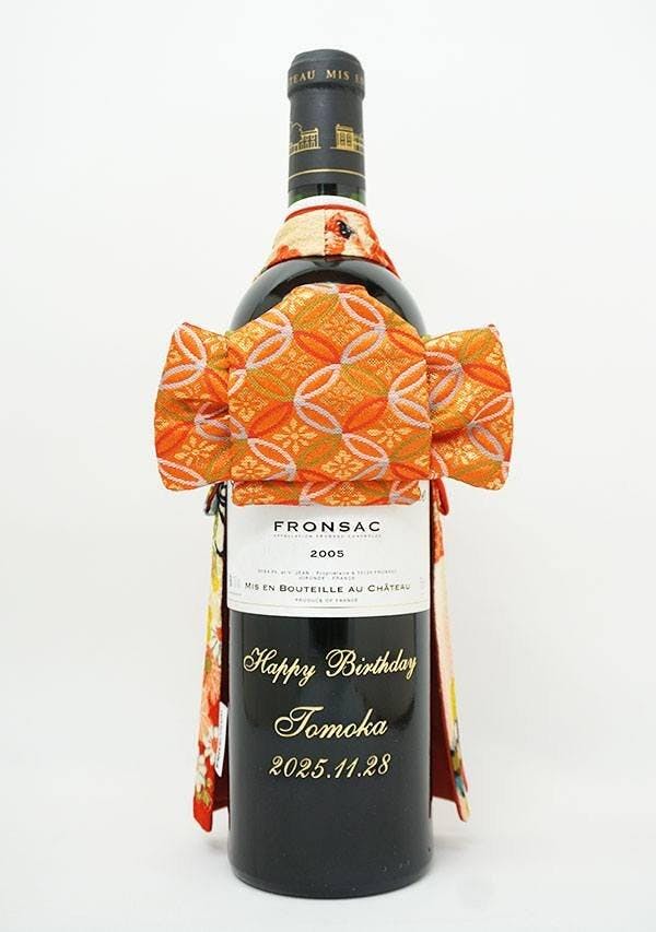 2005年に収穫されたブドウで醸造・熟成された生まれ年ワインに着物をかぶせた「世界に1つ」の贈り物です。
