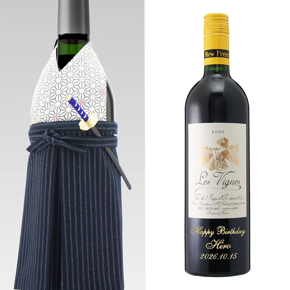 2005年に収穫されたブドウで醸造・熟成された生まれ年ワインに着物をかぶせた「世界に1つ」の贈り物です。