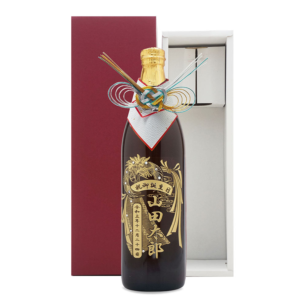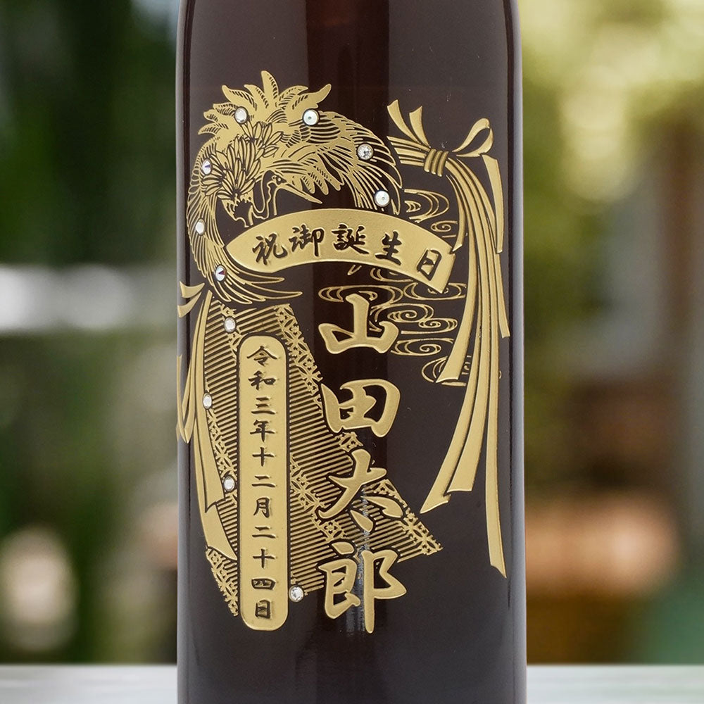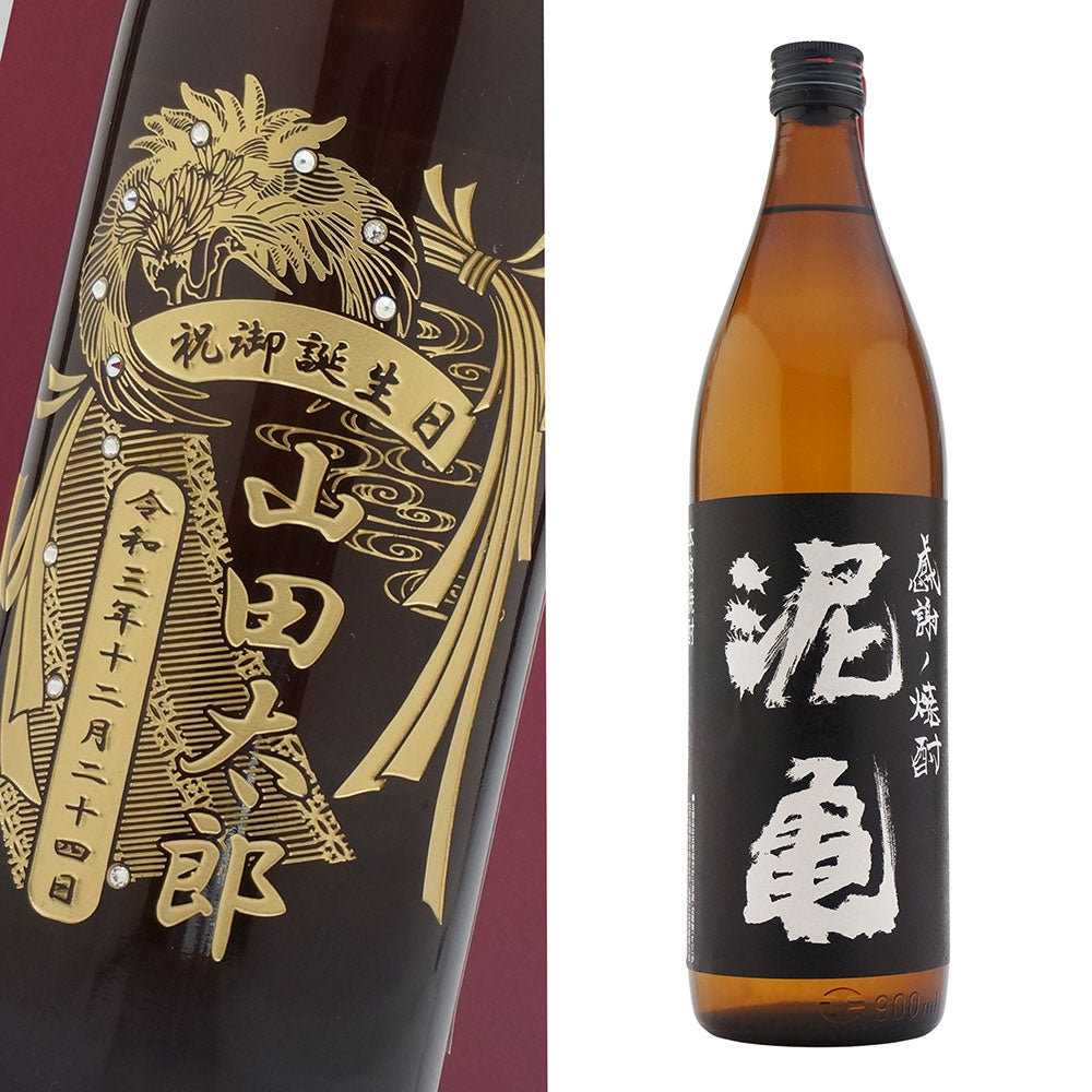 麦焼酎 「泥亀」 に美しいデザイン・お名前を彫刻したオリジナルギフトです。