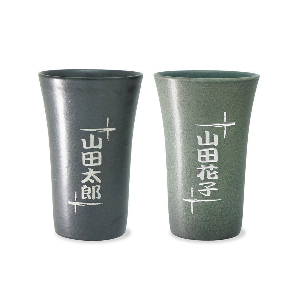 名前入り彫刻 ペア 陶器カップ 信楽焼 誕生日 父の日 母の日 明山窯