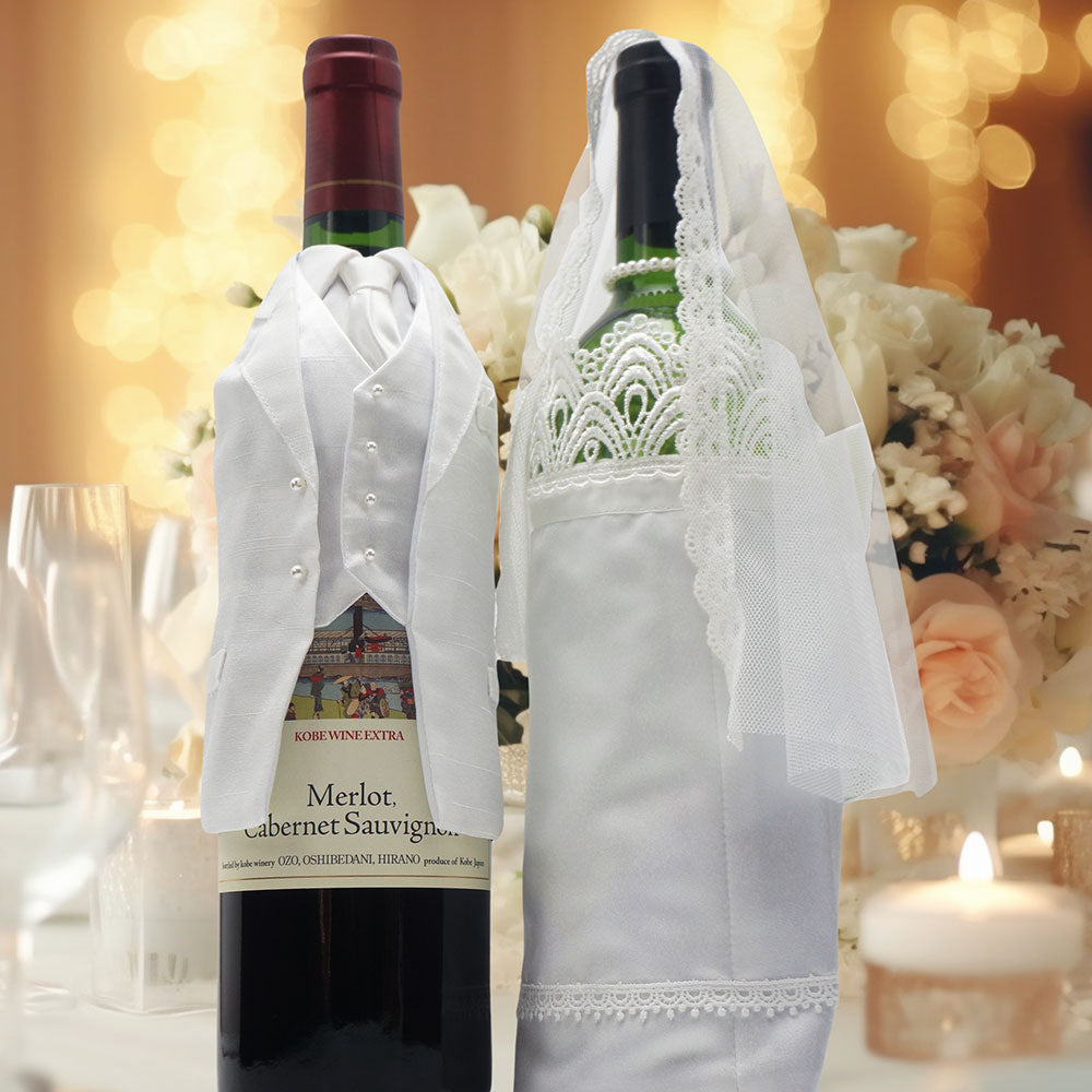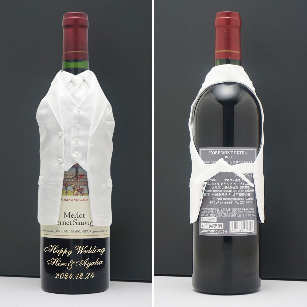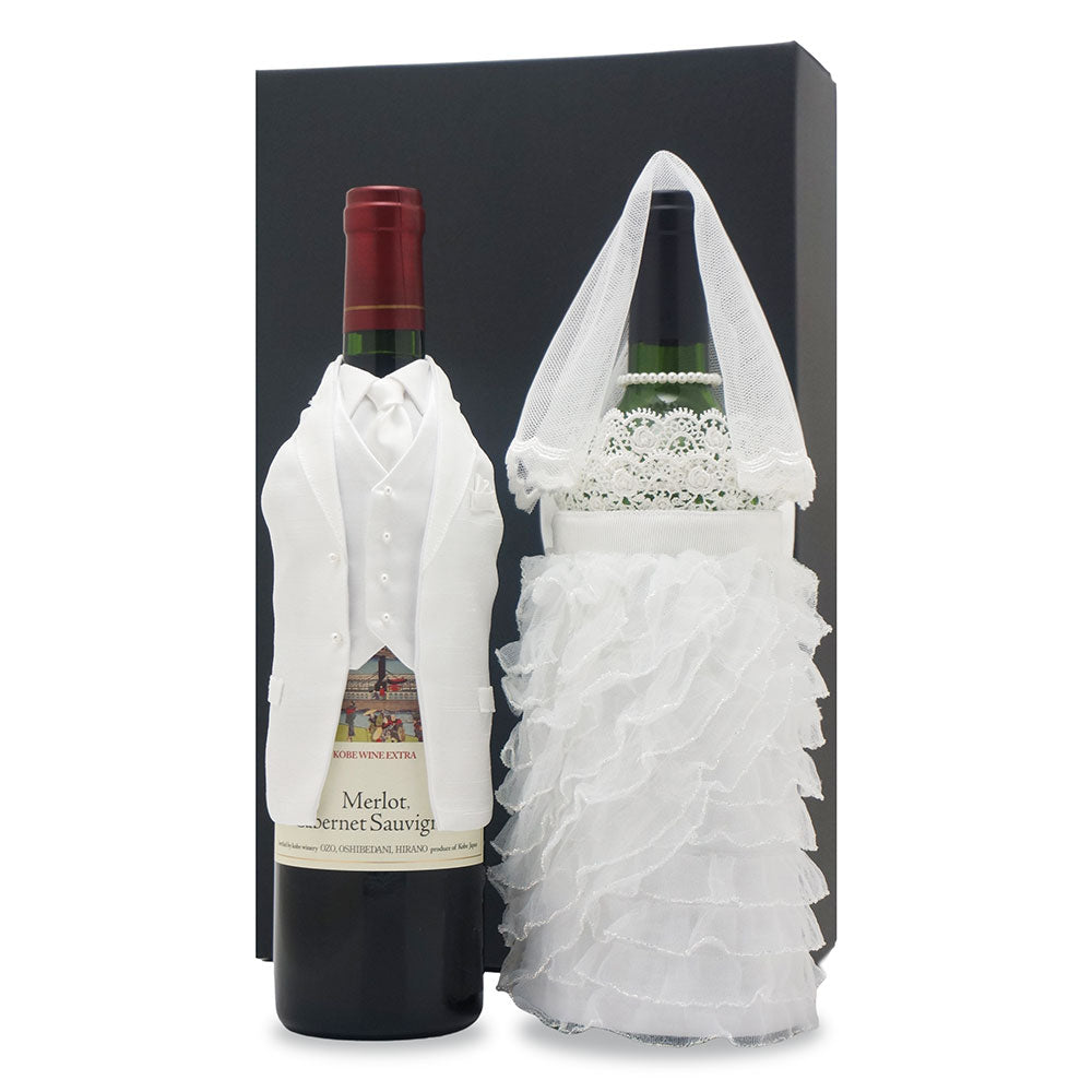 結婚式ワイン 神戸ワイン タキシード ウェディングドレス付 赤白セット 名入れ彫刻なし