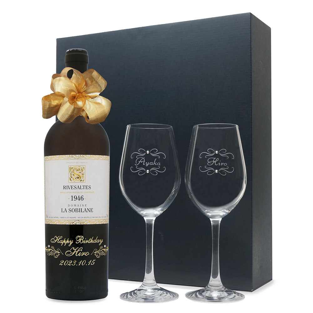 1946年 生まれ年ワイン ペアグラスのセット 名前入り彫刻のお酒 昭和21年