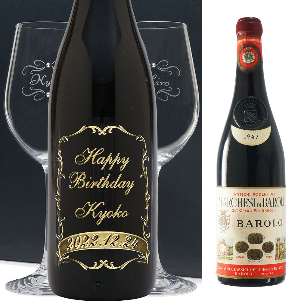 1947年 生まれ年 イタリアワイン ペアグラスのセット 名前入り彫刻のお酒 昭和22年