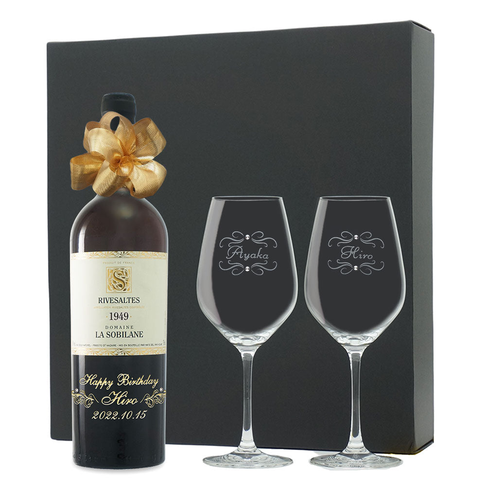 1949年 生まれ年ワイン ペアグラスのセット 名前入り彫刻のお酒 昭和24年