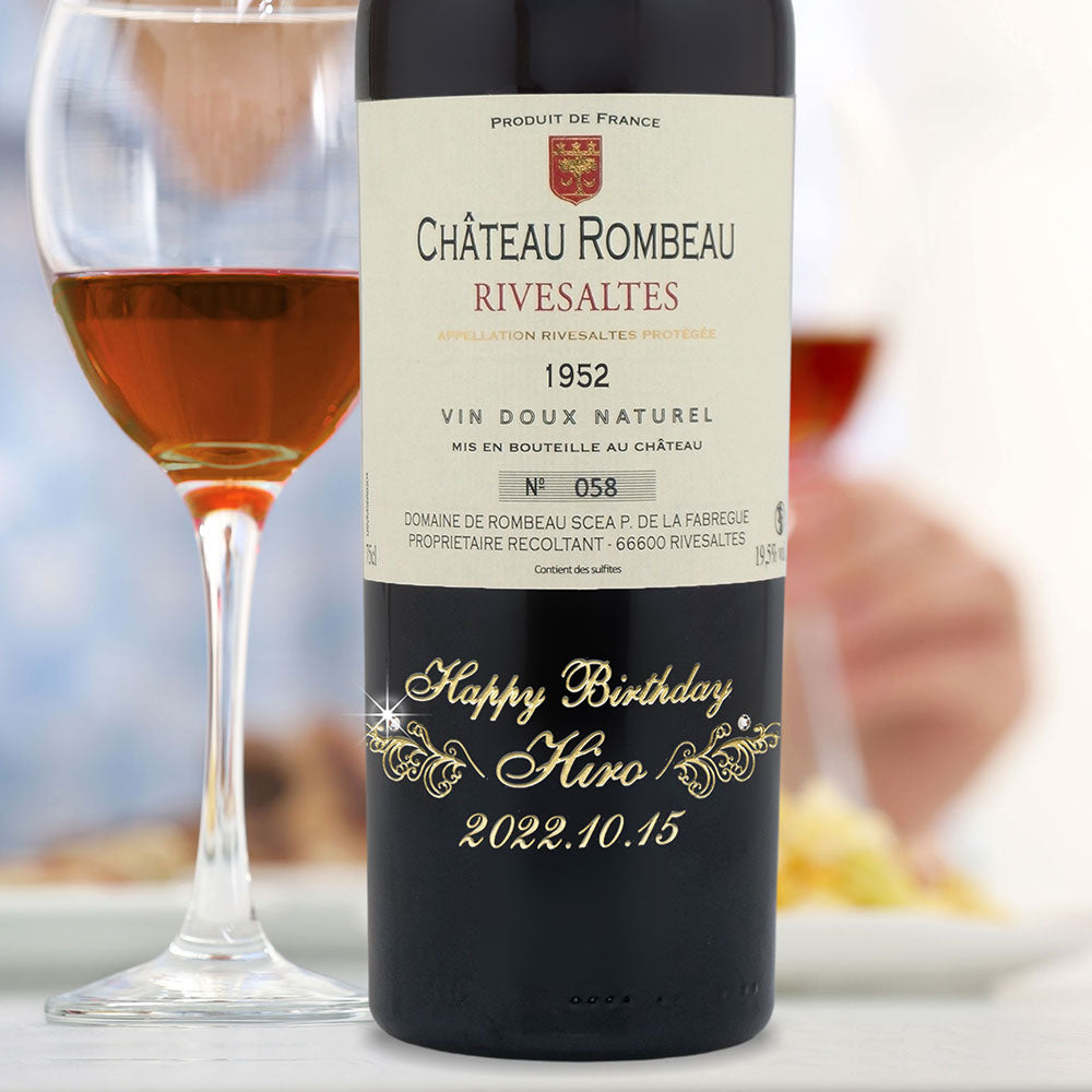 1952年に収穫されたブドウで作られた生まれ年ワインに、名前やメッセージを彫刻して贈る、特別なオーダーメイドギフト。誕生日や記念日に、世界でひとつだけの感動をお届けします。