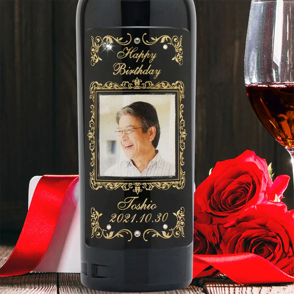 オリジナルのガラス製ラベルにメッセージ・名前・日付を彫刻して写真を埋め込んでクリスタルガラス製ののラインストーンを装飾して唯一無二のオーダーメイドのオリジナルギフトを制作します。