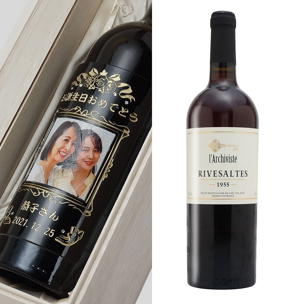 【予約注文】1955年 生まれ年ワイン 写真と名前入り彫刻のお酒 木箱入 昭和30年