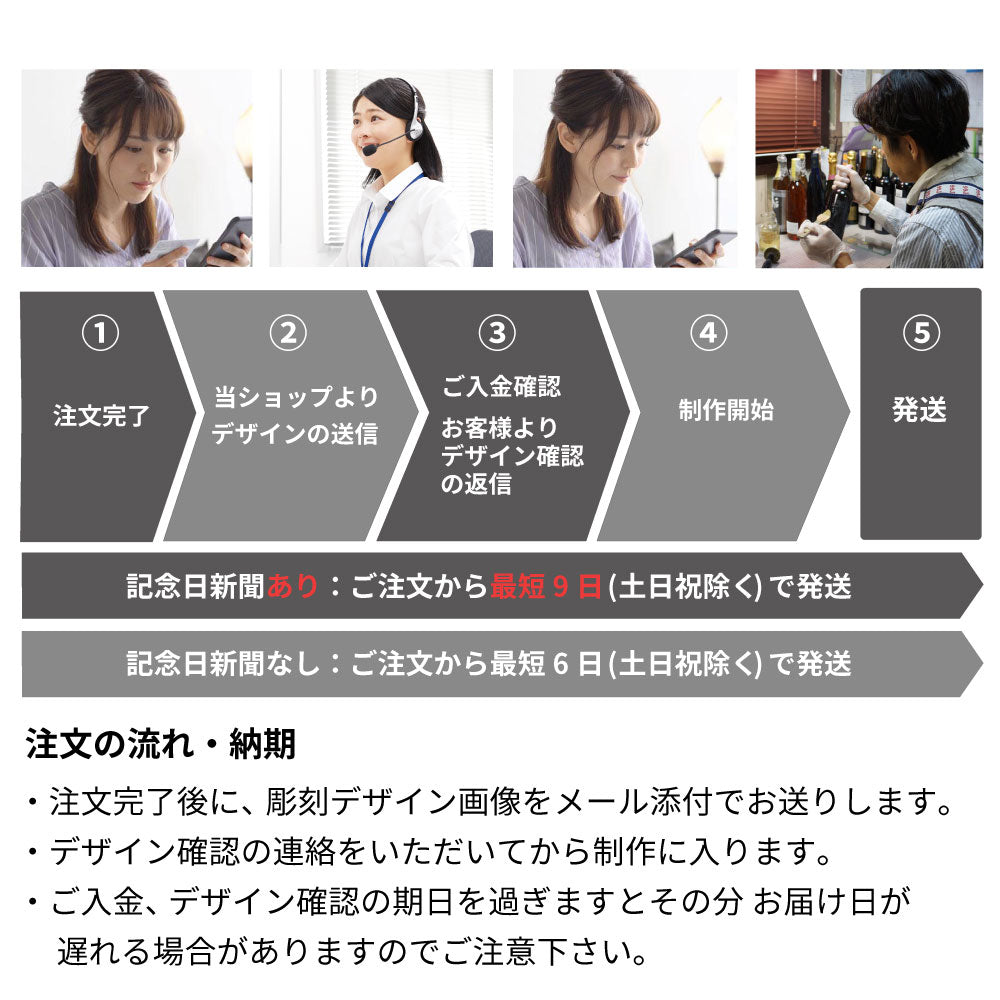 - 事前にデザインの確認をいたしますが文字や数字の間違いには十分ご注意下さい。